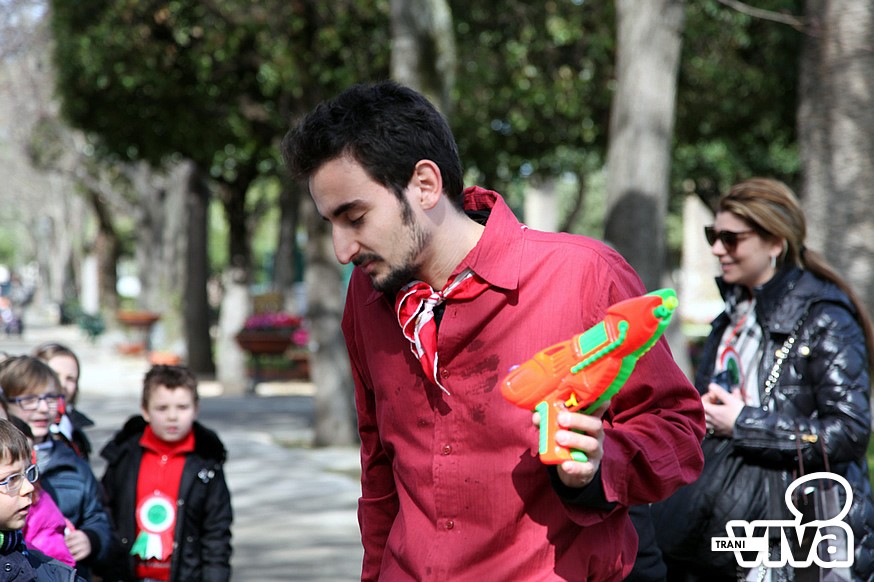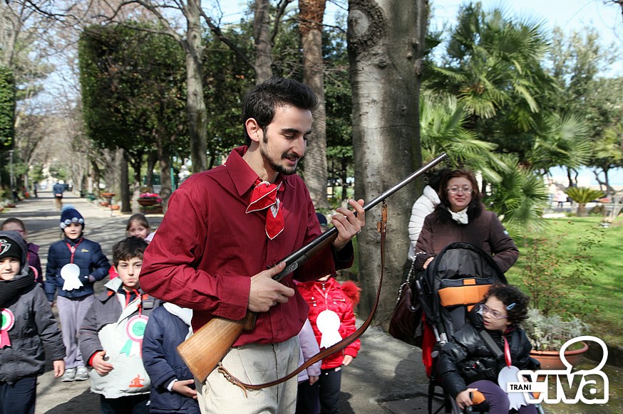 In villa comunale, ben 200 bambini di prima elementare, rivivranno il fascino della spedizione dei Mille con tanto di battaglia tra garibaldini e esercito borbonico, (ripercorrendo i fatti e le vicende della battaglia del Volturno che vide la disfatta dei Borboni). Ai piccoli saranno presentati fatti e racconti di tre grandi personaggi protagonisti di quelle giornate a cominciare da Garibaldi per seguire con Francesco II, re delle due Sicilie e Vittorio Emanuele II. Non mancherà neppure un cavallo segno della regalità piemontese.