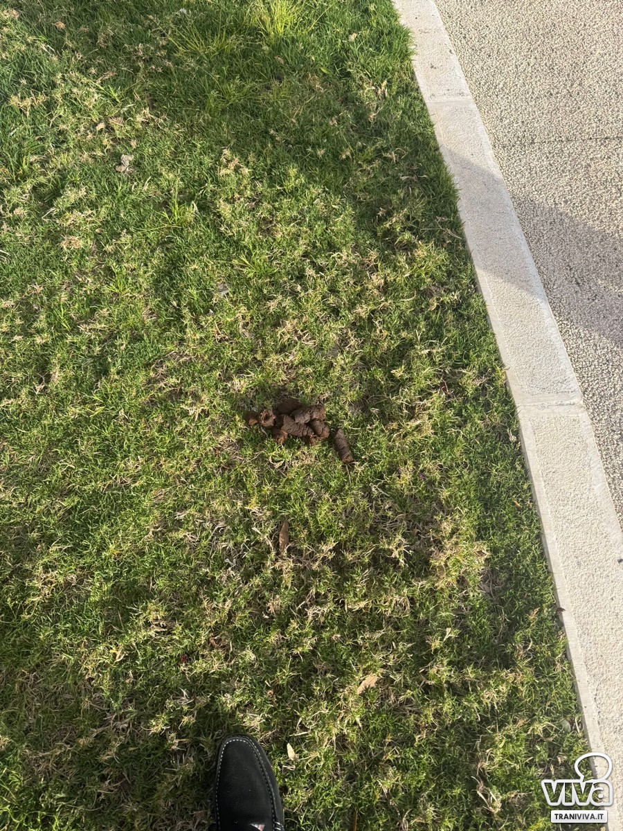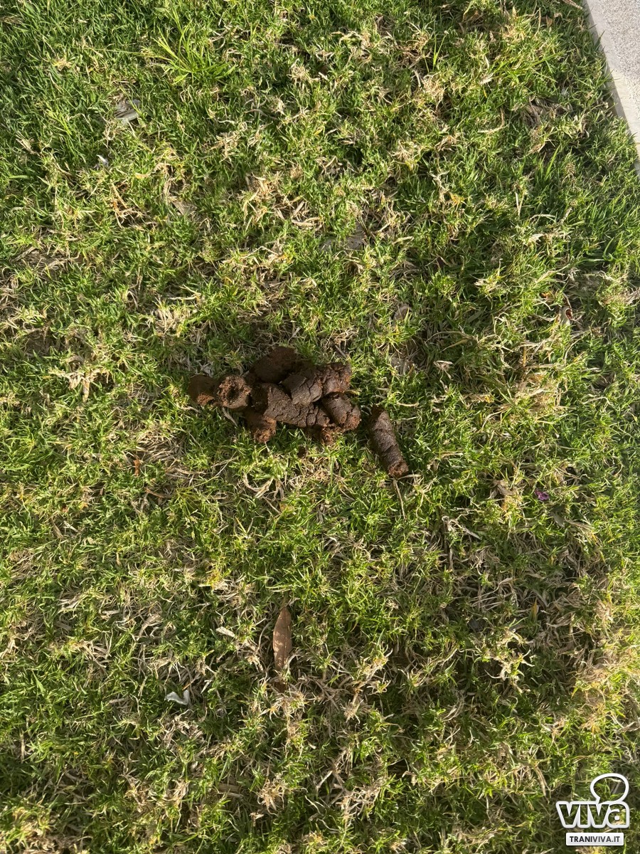 Escrementi lasciati sul prato della parrocchia, incuria, abbandono, totale mancanza di senso civico