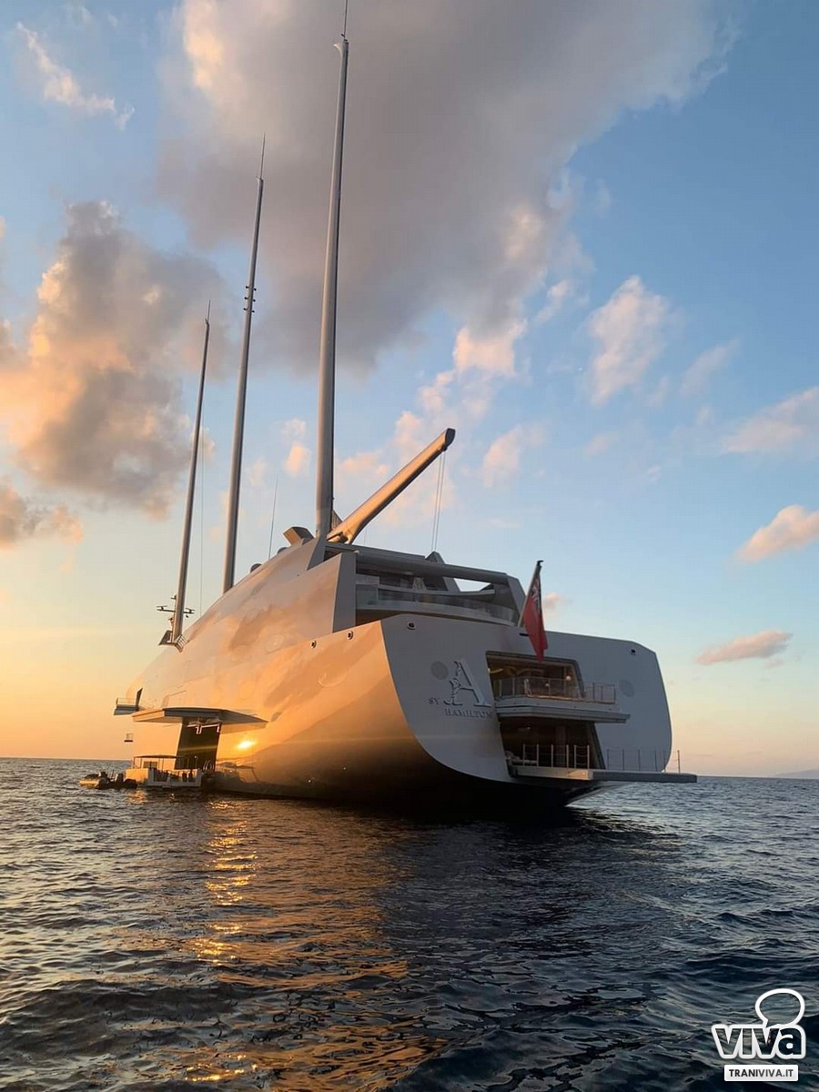 "A", lo yacht a vela più grande del mondo, dà il buongiorno a Trani