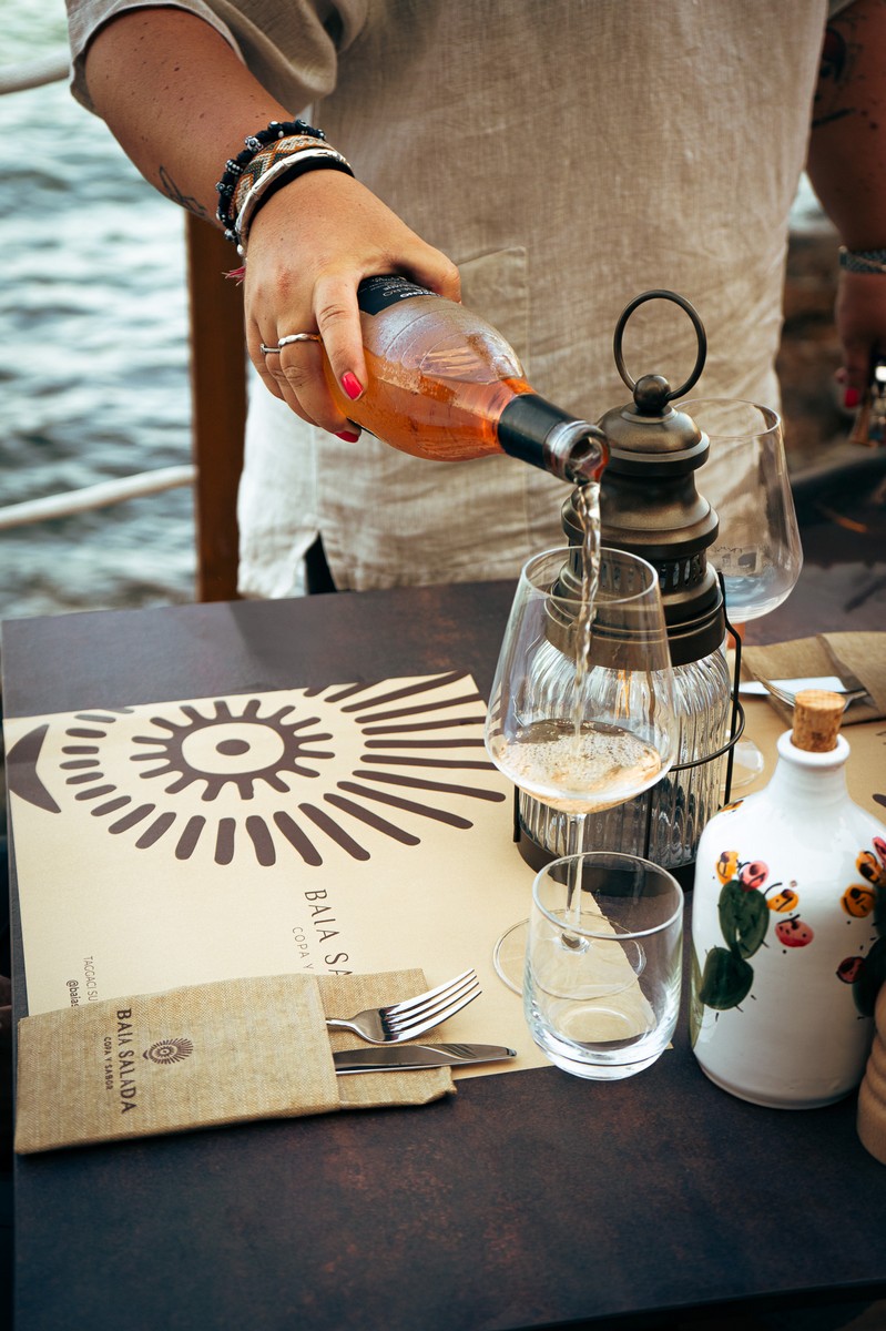 Baia Salada, infatti, non è un locale tradizionale. La sua forza è nell'atmosfera, nel contesto suggestivo e in una proposta gastronomica pensata per accompagnare momenti di relax: aperitivi, apericena e dopocena, con un'accurata selezione di vini, drink e birre artigianali e pochi piatti centrali, curati nei dettagli, da condividere.