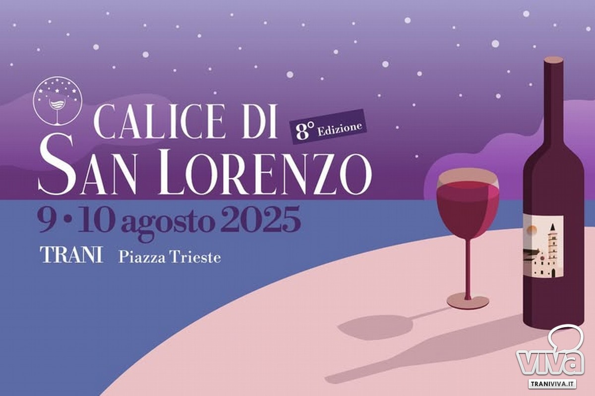 Tutto pronto a Trani per l'edizione 2025 di "Calice di San Lorenzo", l'evento che unisce vino, gastronomia, musica e osservazione astronomica. Da oggi, l'area che da Piazza Trieste conduce fino alla Cattedrale si trasformerà in un percorso enogastronomico e culturale, start ore 20:00, ritiro ticket dalle ore 19:00 al point in Piazza Tieste.
