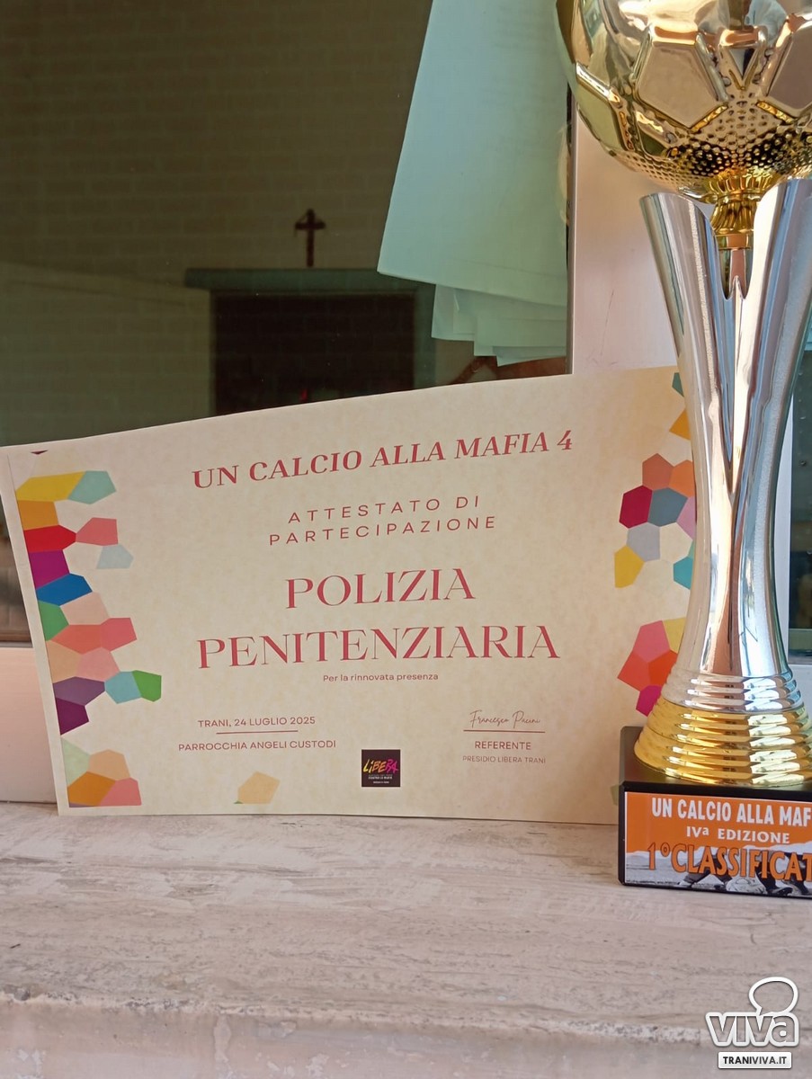 Si è svolto ieri a Trani il "Trofeo Un calcio alla mafia", un appuntamento ormai simbolico promosso dal Presidio Libera Trani per coniugare sport e impegno contro la criminalità organizzata. In campo, tra i numerosi partecipanti, anche la squadra della Polizia Penitenziaria diretta dal comandante Felice Nazareno De Pinto che ha avuto la meglio sulla formazione della Parrocchia degli Angeli Custodi, imponendosi con un netto 5-0.