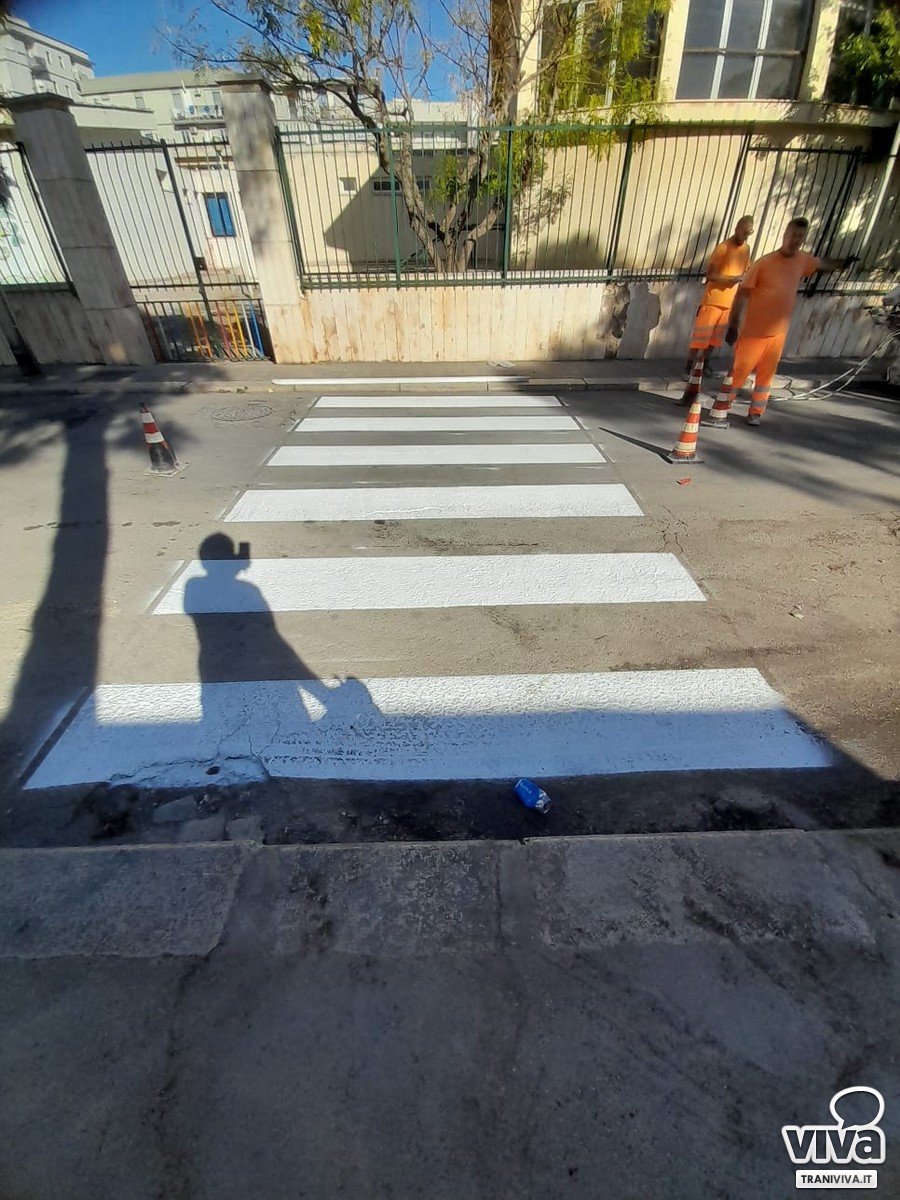 Oltre a "sicurezza", l'altra parola chiave delle operazioni di questi ultimi giorni è "ordine", come per l'intervento di rifacimento della segnaletica orizzontale dell'area di sosta che fronteggia l'ingresso secondario della Villa Comunale ove vi sono le celebri giostrine, che risponde ad una necessità espressa dagli abitanti della zona. «Una situazione più ordinata ed una risposta immediata da parte del Comune di Trani. La richiesta dei residenti è arrivata circa 10 giorni fa, abbiamo ritenuto di accoglierla, - dichiara Cecilia Di Lernia - come per le già soddisfatte richieste dei residenti di Piazzetta Imbriani e Via Don Pasquale Uva. Si tratta di aree di sosta libera che necessitavano di regolamentazione. Ora abbiamo una piazza ordinata e sono sicura del rispetto da parte dei residenti. Questo è il segno della corrispondenza di intenti e della collaborazione tra la Pubblica Amministrazione e i cittadini. I suggerimenti sono fondamentali ed è necessario dare risposte immediate alla collettività. Ringraziamo i nostri concittadini».