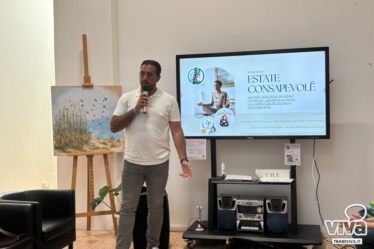 Dopo il successo del primo appuntamento, è tornata a Trani l'iniziativa "Vivere Leggeri – Edizione Estate 2025", un workshop gratuito dedicato al benessere integrato. L'incontro si è tenuto lunedì 18 agosto presso l'HUB Porta Nova in Via Nigrò 18, con l'obiettivo di accompagnare i partecipanti verso un'estate più serena, consapevole e in armonia con sé stessi. Attraverso la sinergia tra nutrizione, psicologia e fisioterapia, i professionisti Corinne Dellisanti, Alessandro Serino e Carmela Capozza hanno guidato i presenti in un'esperienza completa che ha unito teoria e pratica. I temi affrontati spaziano dal dialogo mente-corpo alle tecniche di rilassamento psicofisico, dalla gestione del tempo personale alla consapevolezza alimentare. Di seguito riportiamo gli interventi degli esperti intervenuti all'evento.