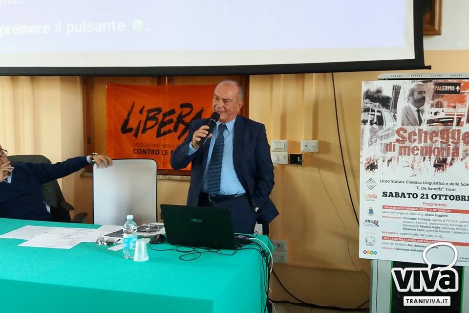 Ancora una volta il Liceo De Sanctis di Trani ha aperto le porte ad un'illustre ospite: stiamo parlando di Giuseppe Costanza, autista del giudice Falcone ed unico superstite della strage di Capaci.