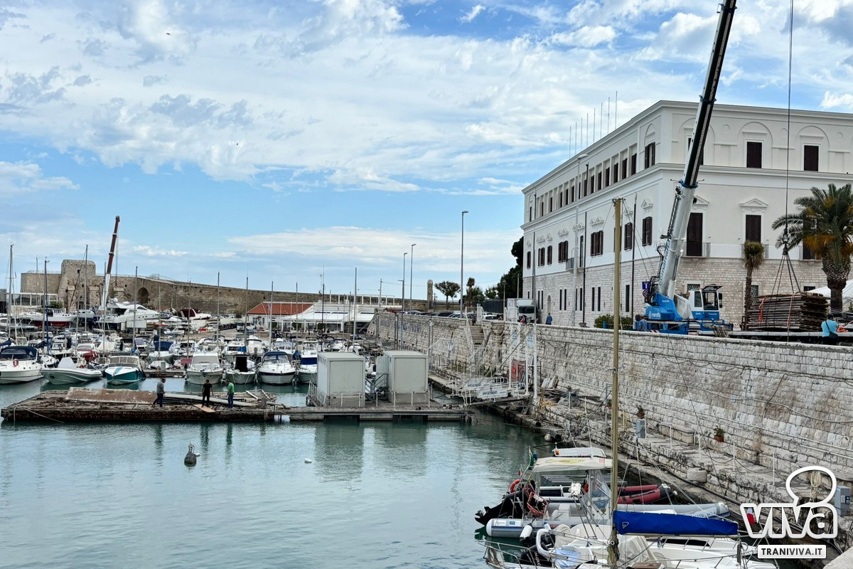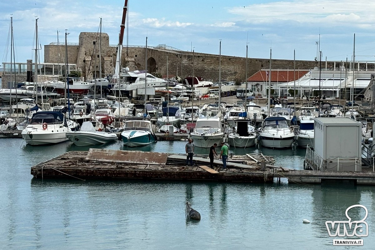 Di quel ristorante galleggiante è rimasto solo il ricordo: e da oggi anche la pedana della struttura che negli anni era stata utilizzata come deposito per sub e diportisti, trasformandosi in un luogo fatiscente a contrasto con la bellezza del panorama del porto di Trani, sarà dimenticata. I lavori sono cominciati questa mattina e in molti si chiedono se per l'area sono in vista nuovi progetti per la valorizzazione di uno dei porti considerati tra i più suggestivi in Italia.