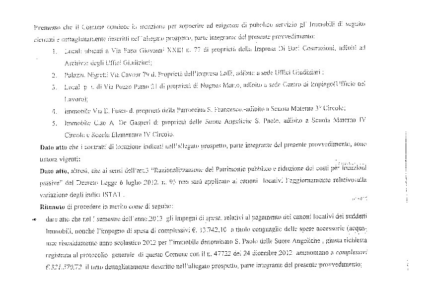 Quella che incorporiamo nell'articolo, a titolo di esempio, è una parte di una determina dirigenziale inerente la liquidazione di canoni per immobili condotti in locazione dal Comune: il testo pubblicato è illeggibile.