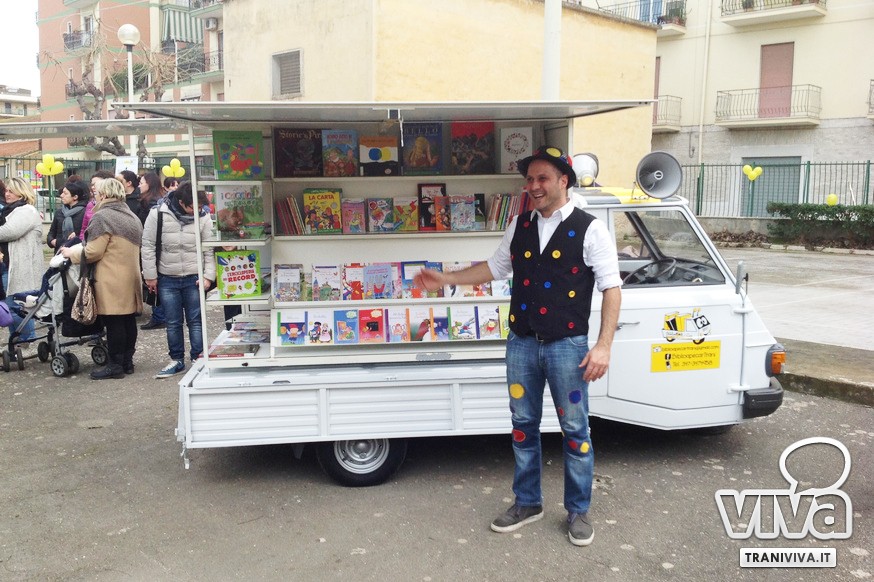 Un Piaggio "Ape Car P2" trasformato in una biblioteca ambulante per bambini, opportunamente attrezzata di tutto punto per portare i libri e la cultura in ogni dove: si tratta di BiblioApeCar che è stata accolta dagli alunni della scuola Petronelli di Trani tra canti, balli e tanta allegria. L'iniziativa, promossa dalla Regione Puglia, consentirà a tutti gli alunni del 2° Circolo Didattico di "prendere – leggere – gustare" un libro, e di coltivare il piacere di leggere anche scoprendo nella storica Biblioteca Comunale di Trani la sezione dedicata ai bambini. La BiblioApeCar sosterà per tutto il mese di Febbraio presso la scuola.