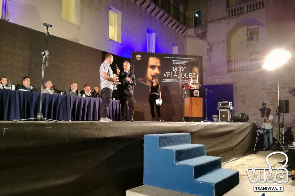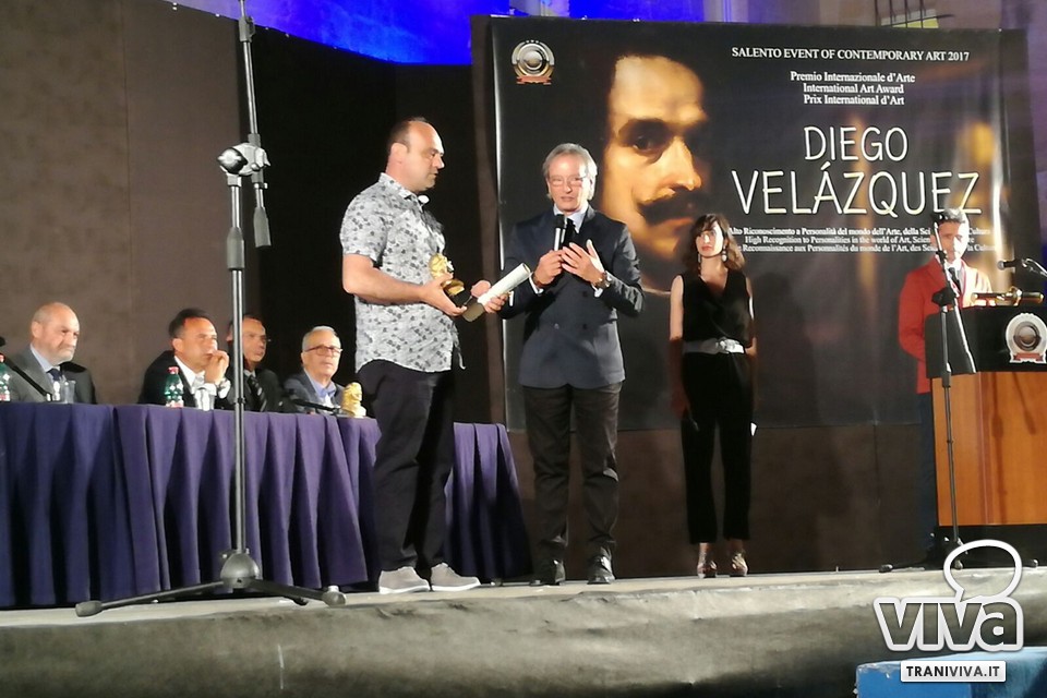 All'artista tranese Aniello Palmieri è stato conferito l'ambito premio internazionale d'arte dedicato al pittore spagnolo "Diego Velàzquez" per le importanti attività che ha svolto e svolge nel campo della cultura e dell'arte. Unitamente al premio gli verrà conferito il prestigioso titolo onorifico di "Maestro Accademico Onorario" direttamente dal Comitato Scientifico d'Onore nell'ambito dell'evento "Salento Event of Contemporay Art" dedicato ai Pittori, agli Scultori, agli Uomini della Scienza e della Cultura di tutto il mondo, che si terrà nella città di Lecce sabato 1 luglio 2017 alle ore 19, presso l'antico Teatro Romano.