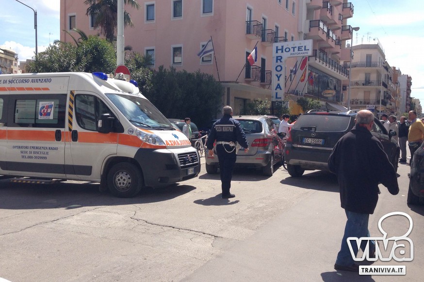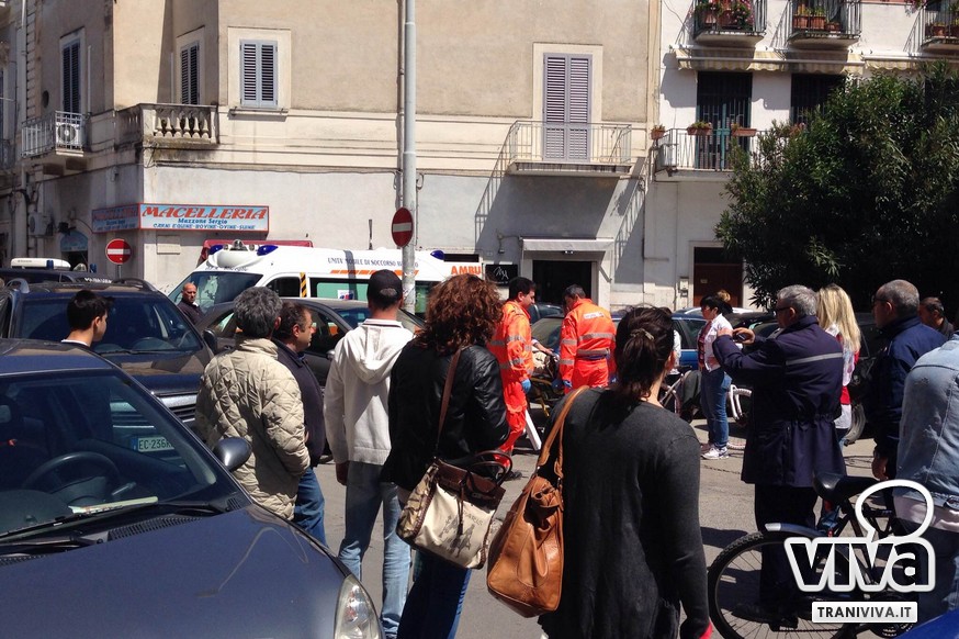 La dinamica dell'incidente è stata abbastanza semplice da ricostruire da parte degli agenti di Polizia Locale giunti sul posto: l'auto, una Opel Antara, che proveniva da via Pansini e stava svoltando verso via De Robertis si è trovata improvvisamente l'uomo in bicicletta di fronte senza possibilità di evitarlo, vista anche la presenza di un'altra auto, una Mercedes, parcheggiata in seconda fila. L'impatto è stato inevitabile ma fortunatamente non molto forte. L'uomo in sella alla bicicletta tuttavia ha comunque avvertito malore ad uno dei due arti inferiori ed è stato richiesto l'intervento di un'ambulanza del 118 di Trani.
