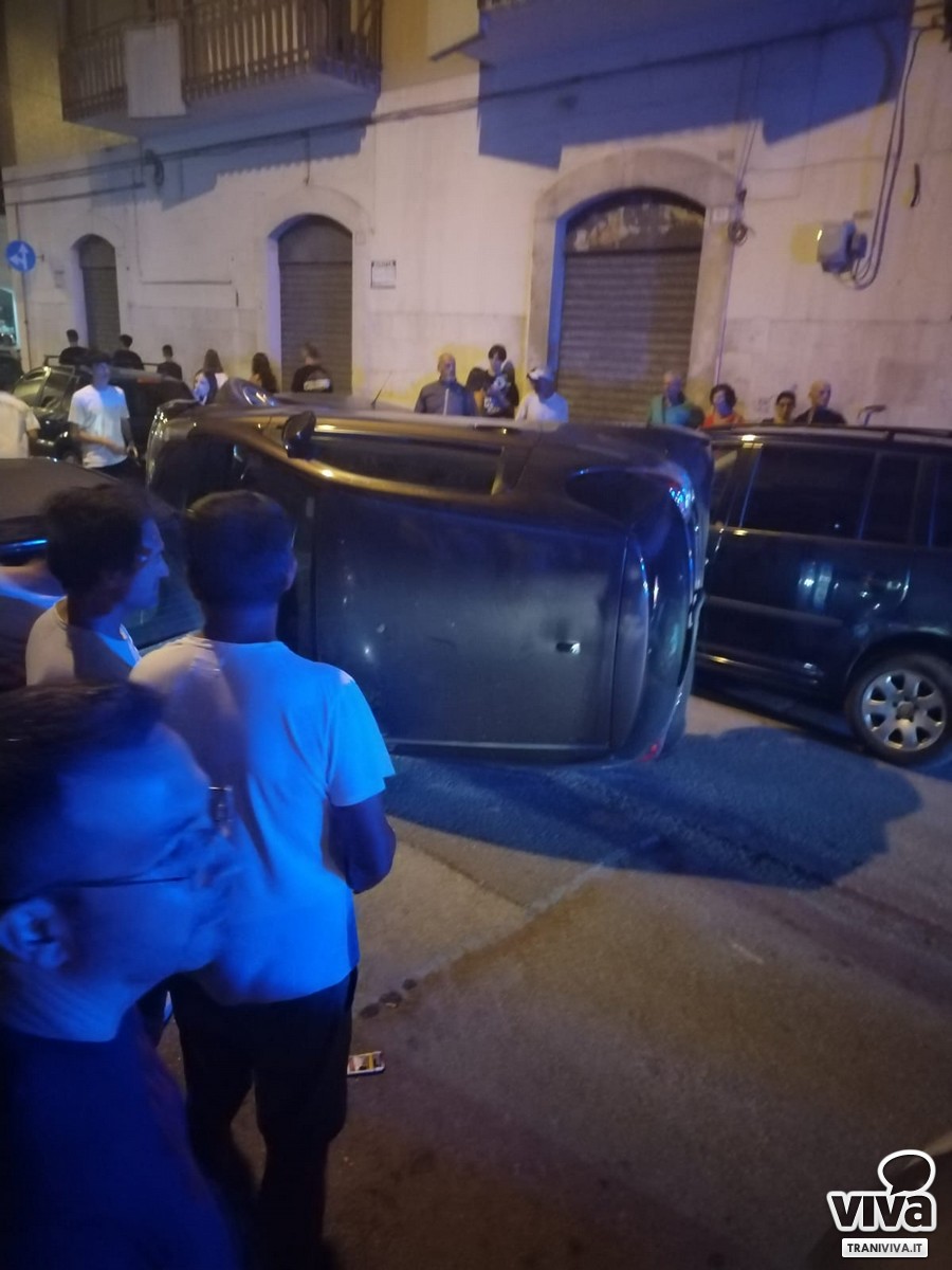 Auto si ribalta in centro a Trani, nessun ferito