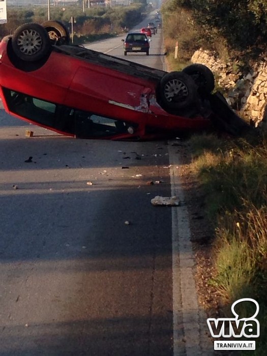 Primo incidente dell'anno sulla strada provinciale che collega Trani ad Andria: stamane attorno alle 8.30, una Lancia Y di colore rosso si è ribaltata, per cause ancora in via di accertamento. Alla guida un 21enne andriese soccorso dall'equipe "Mike 12" con l'ambulanza del 118 di Trani. Il ragazzo, cosciente, è stato trasportato in codice 3 al Pronto Soccorso dell'Ospedale "Bonomo" di Andria dopo esser stato estratto dall'autovettura ribaltata. Per lui in corso accertamenti.