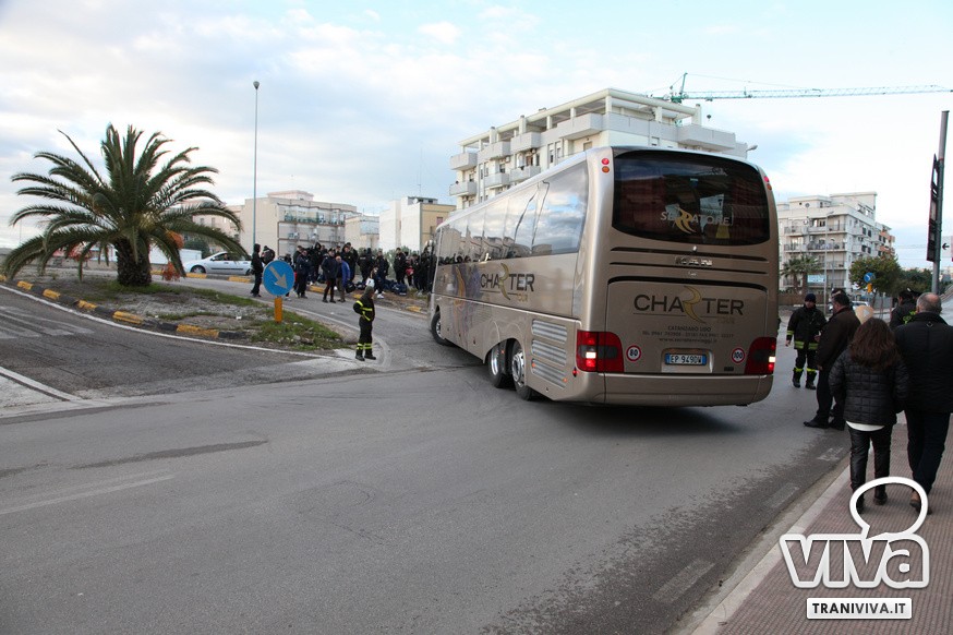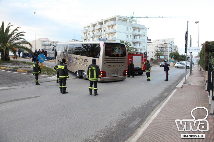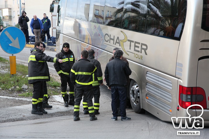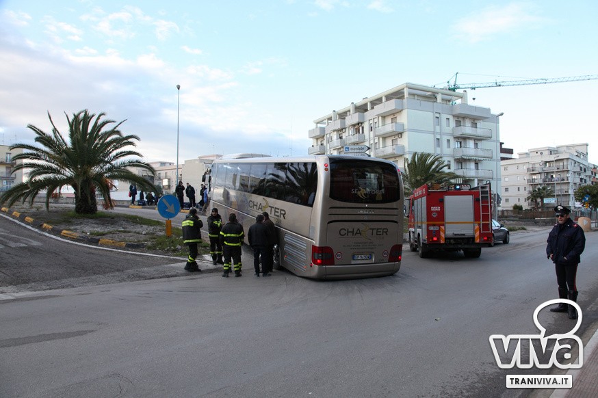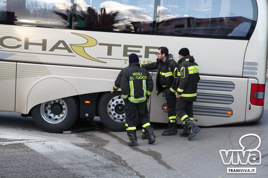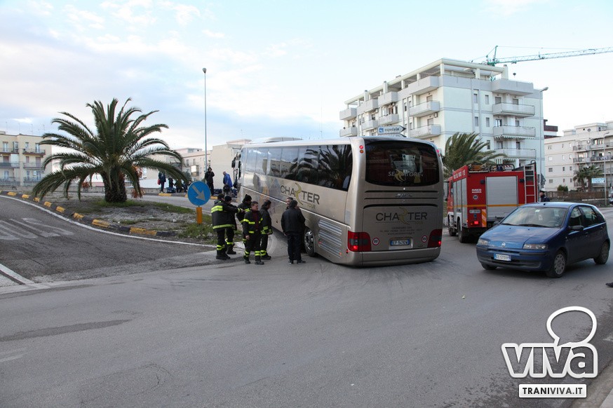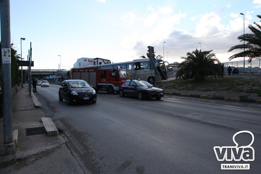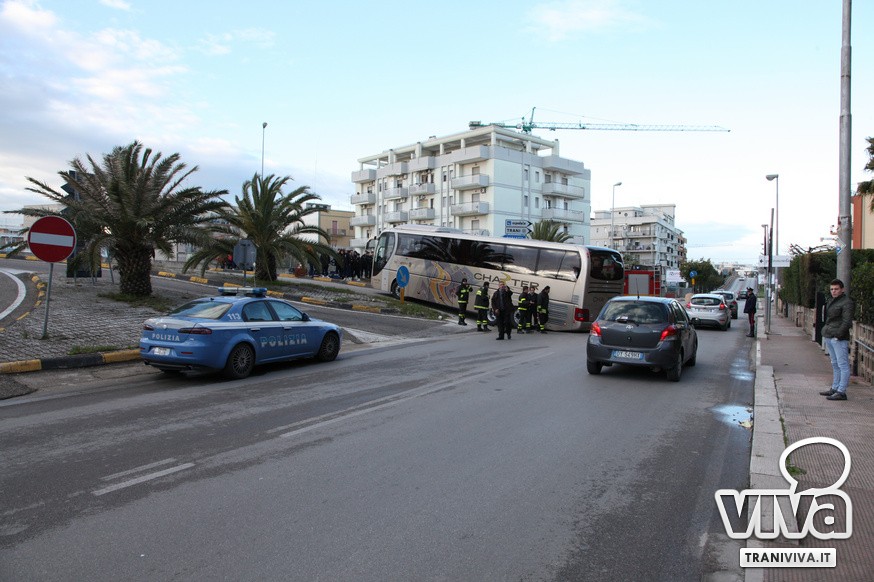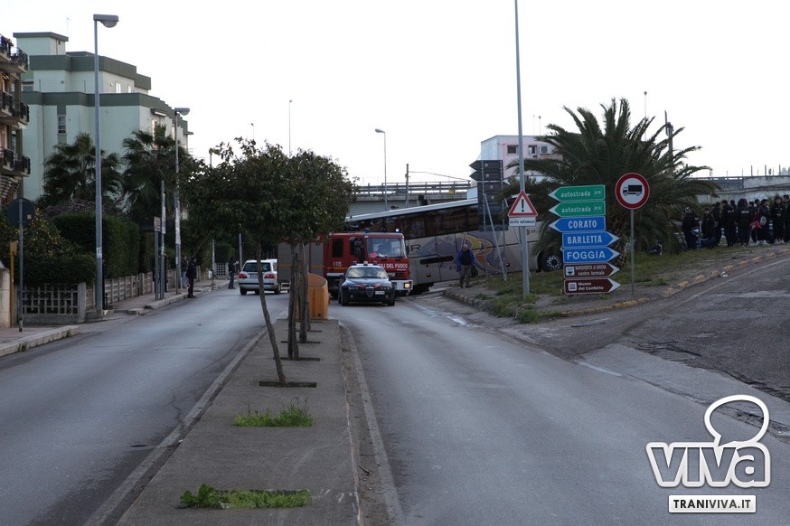 Nel primo pomeriggio di oggi un autobus è rimasto incastrato sulla rampa di accesso della strada statale 16 bis. Come più volte accaduto, l'eccessiva ripidità della salita per la corsia nord dell'entrata Trani Centro non permette ai mezzi di grosse dimensioni di utilizzare la rampa di via delle Forze Armate. Risultato: il pullman degli allievi nazionali del Catanzaro Calcio, impegnati oggi in una partita a Barletta, è rimasto a lungo incastrato, creando anche disagi alla circolazione. Sul posto sono intervenuti i Carabinieri, i Vigili del Fuoco e una pattuglia della Polizia. Il mezzo è stato sbloccato alle 16.20.