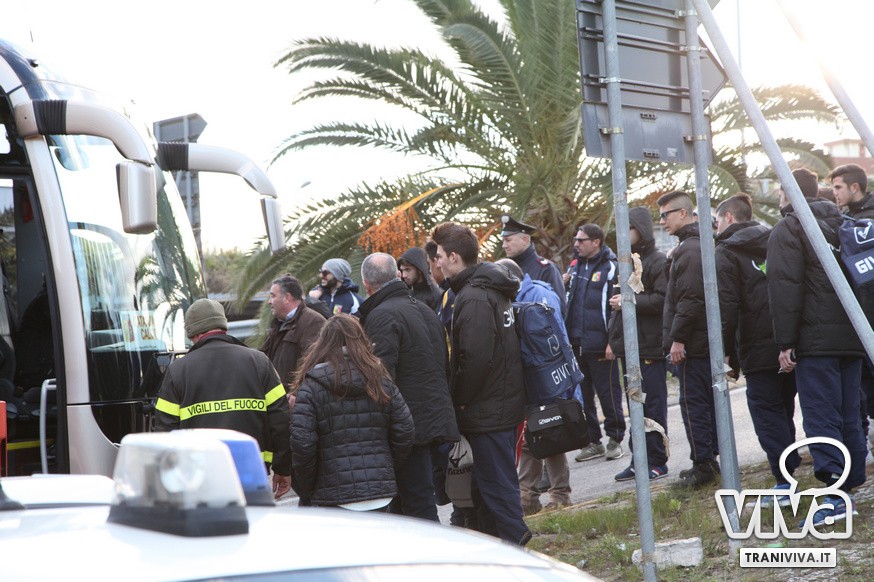 Autobus incastrato a Trani centro: bloccati gli allievi del Catanzaro