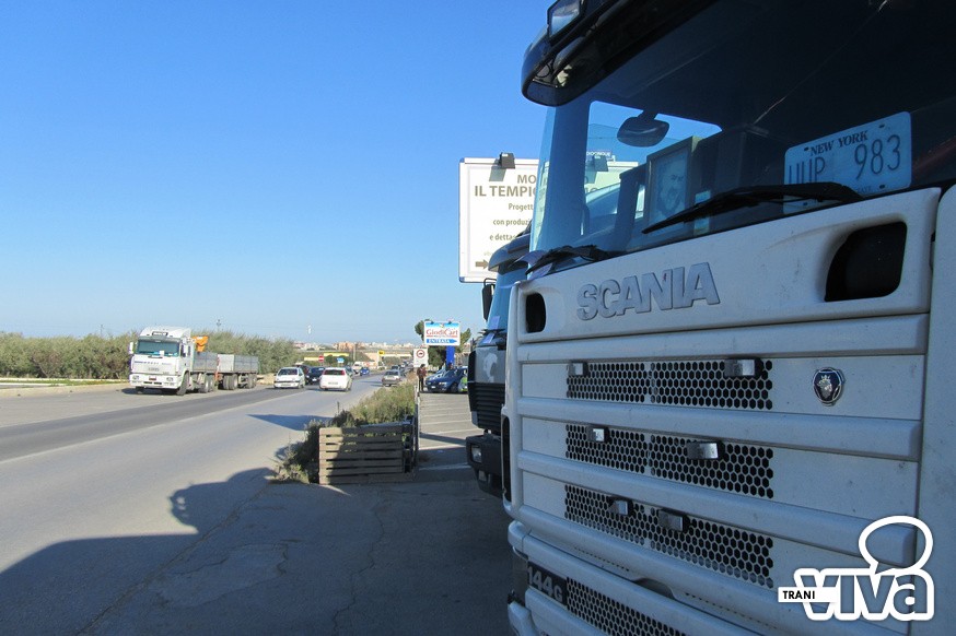 Anche a Trani è scattata la protesta spontanea degli autotrasportatori con alcuni articolati fermi sulla strada provinciale 1 che collega Trani ad Andria, nei pressi dello svincolo Trani Nord della 16 bis.