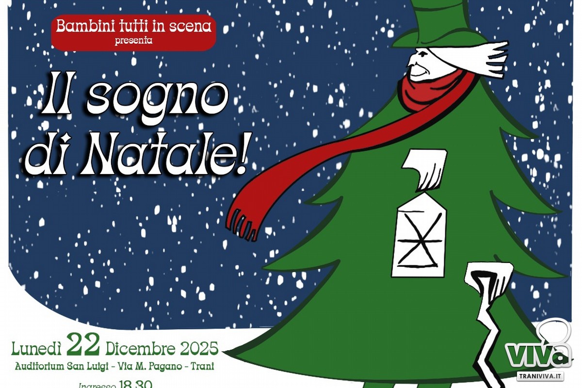 Nell'ambito delle attività natalizie promosse dal comune di Trani, l'Associazione Delfino Blu in collaborazione con la compagnia Bambini Tutti in Scena incanteranno grandi e piccini con il musical Il Sogno di Natale. Uno spettacolo senza tempo, un invito per grandi e piccini pronti a rivivere il sogno natalizio del famosissimo signor Scrooge.