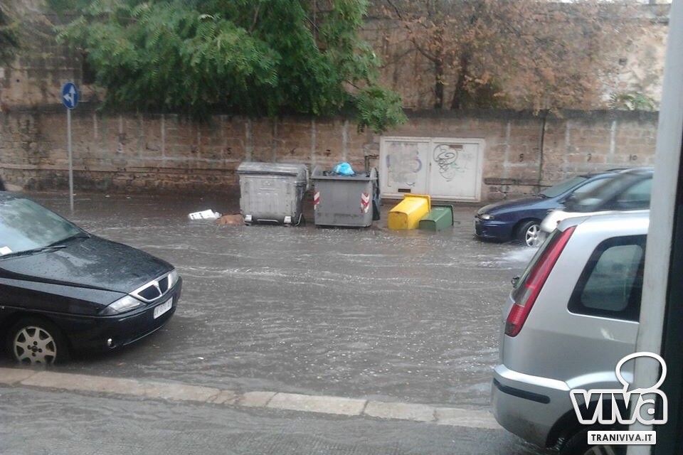 Trani ancora una volta si è trovata impreparata di fronte la bomba d'acqua che ieri è caduta sulla città; sono bastate circa due ore di pioggia per mandarla in tilt. Da nord a sud, dal centro alle periferie, la situazione venutasi a creare è pressoché analoga: dal sottovia di Pozzopiano puntualmente allagato a veri e propri laghi artificiali dalla profondità non indifferente che hanno praticamente rallentato e bloccato il traffico anche in altre zone.