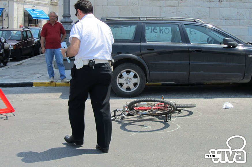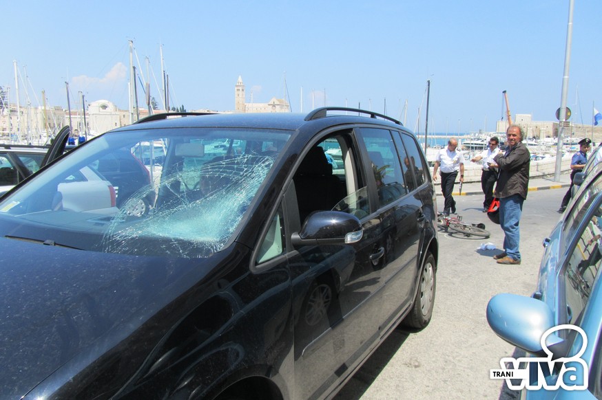 Un ciclista è finito in ospedale dopo l'impatto con una monovolume. E' successo questa mattina, intorno alle 12.00 in piazza Tiepolo, sul porto di Trani. Per cause ancora in fase di accertamento la persona a bordo di una mountain bike ha impattato contro il parabrezza di una Volkswagen Touran, mandandolo in frantumi. Sul posto sono intervenuti gli agenti della Polizia Locale di Trani, i Carabinieri e il personale del 118. Una seconda ambulanza, giunta da Corato, ha prestato soccorso anche alla conducente del veicolo in stato di shock.