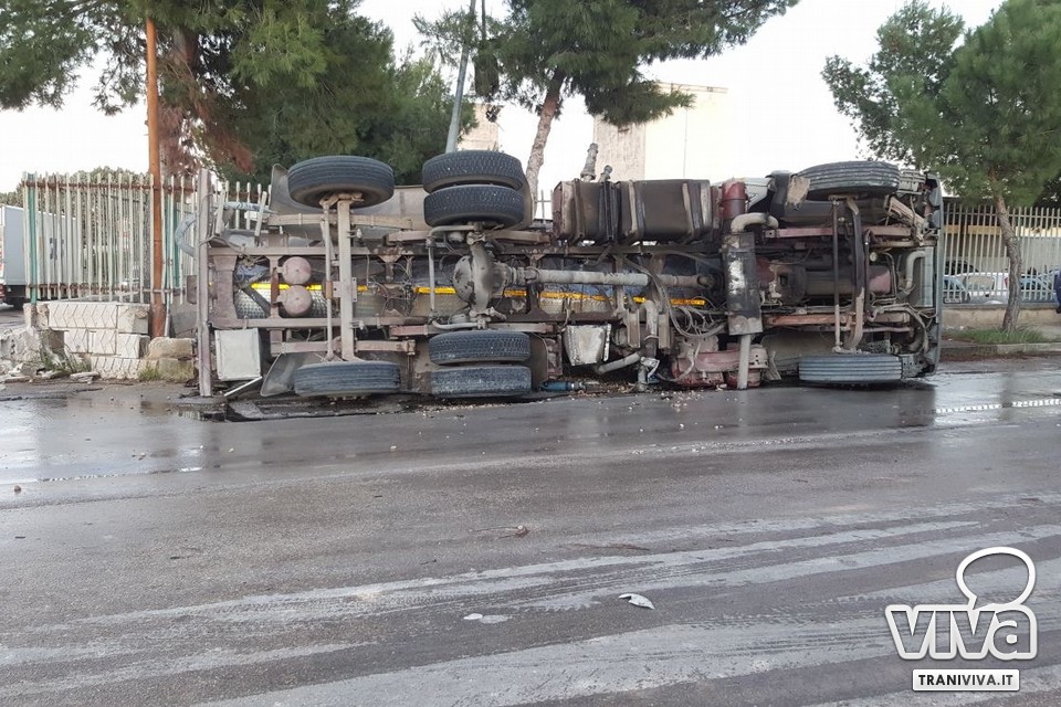A provocare l'impatto sarebbe stata la guida frenetica di un'altra auto. Questo pomeriggio, lungo la strada provinciale Trani-Andria, si è ribaltato un camion cisterna. Secondo una prima ricostruzione dell'incidente, sembrerebbe che un'automobile abbia improvvisamente tagliato la strada al camion, facendo perdere a chi era al volante il controllo del mezzo.