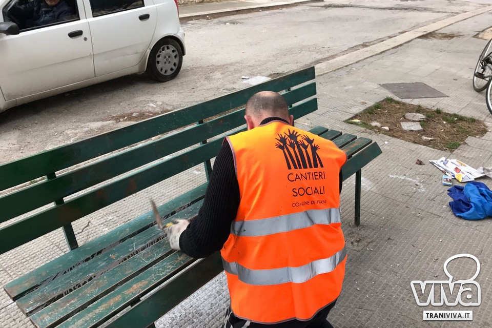 Dopo aver effettuato interventi di ripitturazione delle panchine nella zona sud della città, su indicazione dell'Amministrazione comunale la squadra dei cantieri sociali ha iniziato delle attività di manutenzione nella zona nord di Trani. In particolare, sono state ripitturate le panchine di piazza Kolbe, nei pressi della chiesa degli Angeli Custodi.