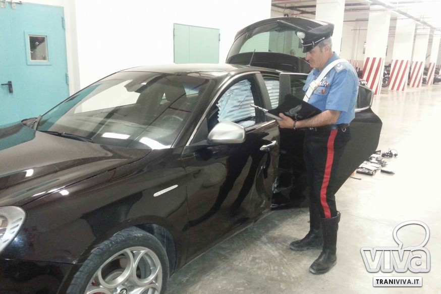 Intorno alle 23.20 a Trani i Carabinieri della locale Compagnia hanno intercettato in via delle Tufare un'Alfa Romeo Giulietta, segnalata poco prima da un utente al 112 mentre era in atto un furto d'auto in via Polonia. Affiancata dalla gazzella dell'Arma, il conducente della Giulietta non ha esitato a speronarla per tentare la fuga, ma senza successo, poiché il mezzo, con l'attivazione degli airbag, è andato in panne e i due occupanti, approfittando del buio della notte, sono riusciti a dileguarsi a piedi nelle campagne circostanti.