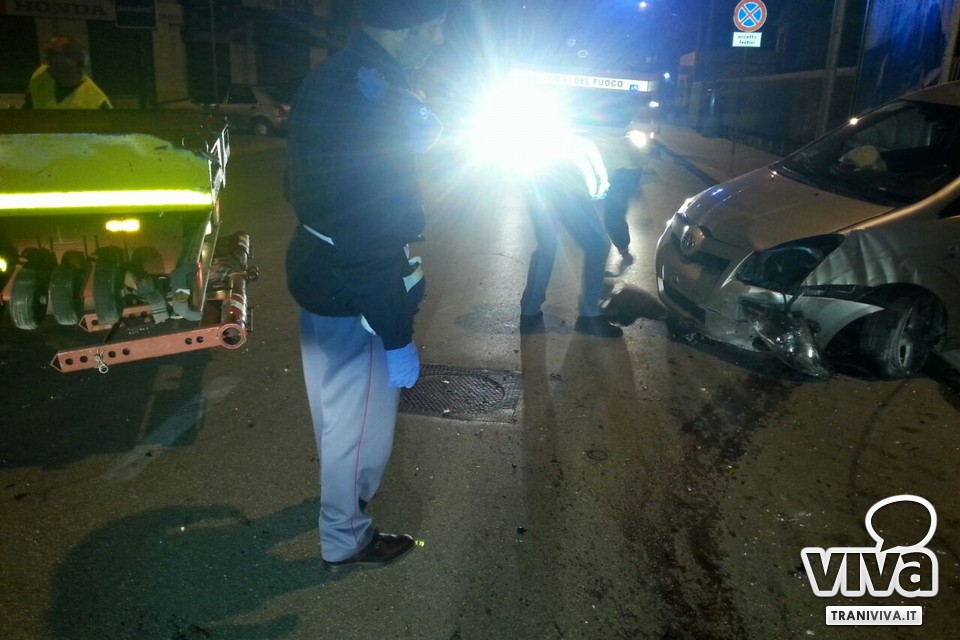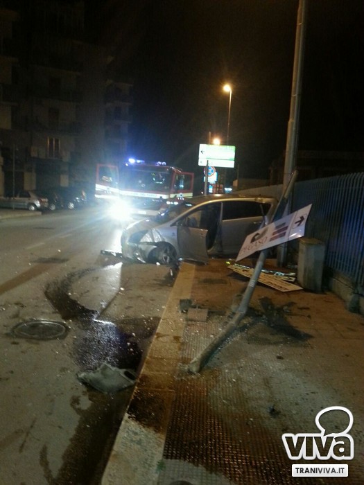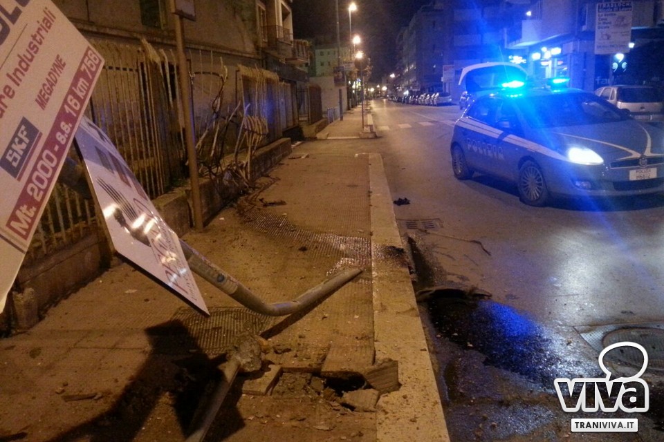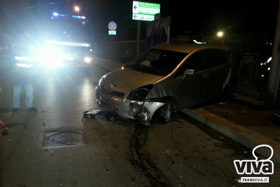 Nella notte, attorno all'1.30 su via Barletta all'incrocio con via Papa Giovanni 23esimo, un'auto ha perso il controllo per cause ancora tutte da accertare e chiarire, ed è carabolata sul marciapiede finendo la propria corsa su un contatore del gas metano con la conseguente rottura del tubo e fuoriuscita di gas.