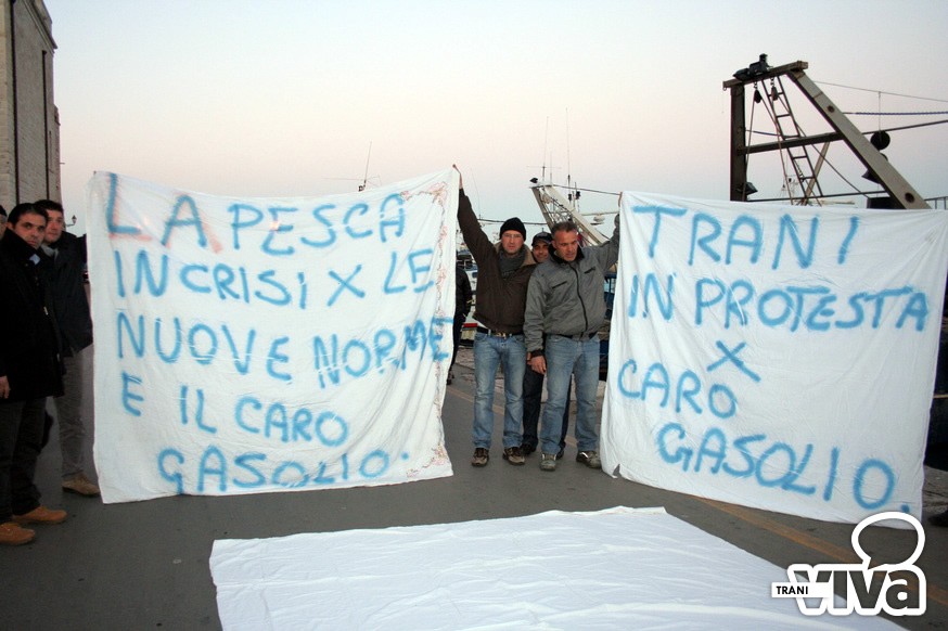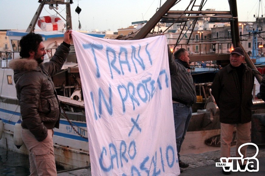 Monta la protesta del settore pesca. Da questo pomeriggio sono in sciopero ed a tempo indeterminato le marinerie di Trani, Bisceglie, Barletta e Molfetta. Sulla banchina di Trani monta la rabbia dei pescatori che annunciano l'intenzione di paralizzare l'intero comparto.
