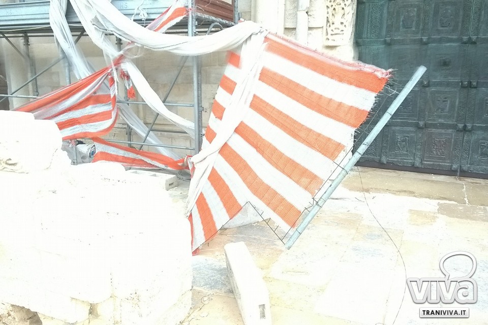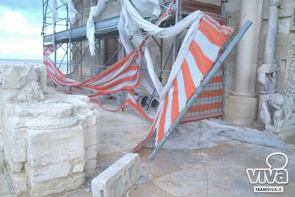 Seppur pericolosa, dovrebbe tuttavia trattarsi di una situazione assolutamente provvisoria in quanto, come riferito dallo stesso Rettore della Cattedrale, Don Nicola Napolitano, gli operai sono al lavoro per rimuovere completamente le impalcature visto che i lavori di restauro sono finalmente finiti. La Cattedrale di Trani, nei prossimi giorni, sarà dunque liberata dalla gabbia che l'ha imprigionata per diversi mesi e potrà tornare ad essere fotografata dai tanti turisti che continuano a venire costantemente a visitarla.