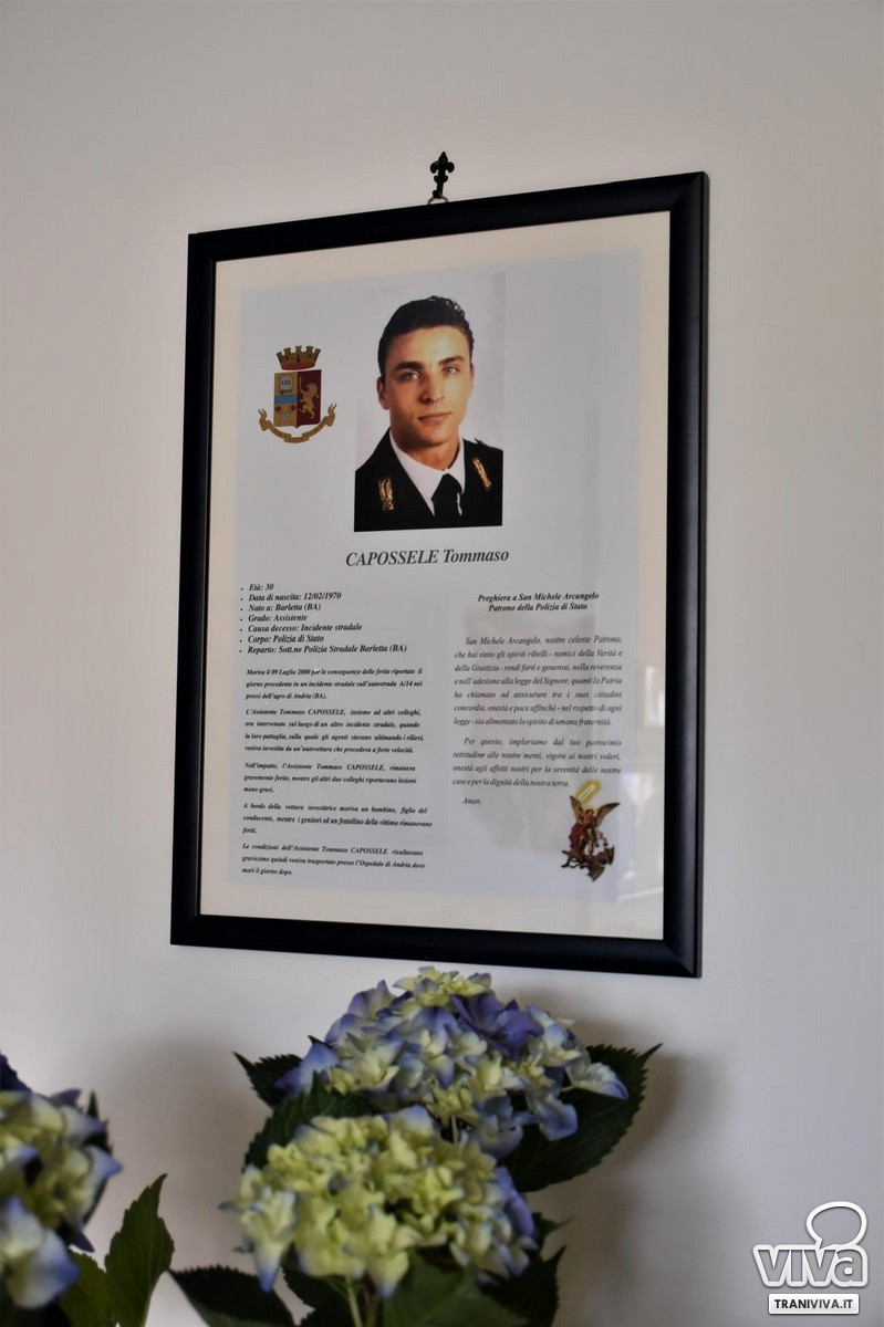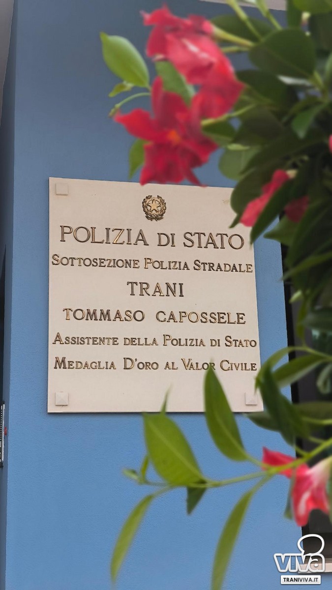 Si è tenuta oggi, presso la Sottosezione Polizia Stradale di Trani, la cerimonia di consegna di un murales in ricordo di Tommaso Capossele, Agente Scelto della Polizia di Stato, medaglia d'oro al Valor Civile, ucciso in servizio nell'agro di Andria a seguito di un incidente stradale occorso sulla A14.