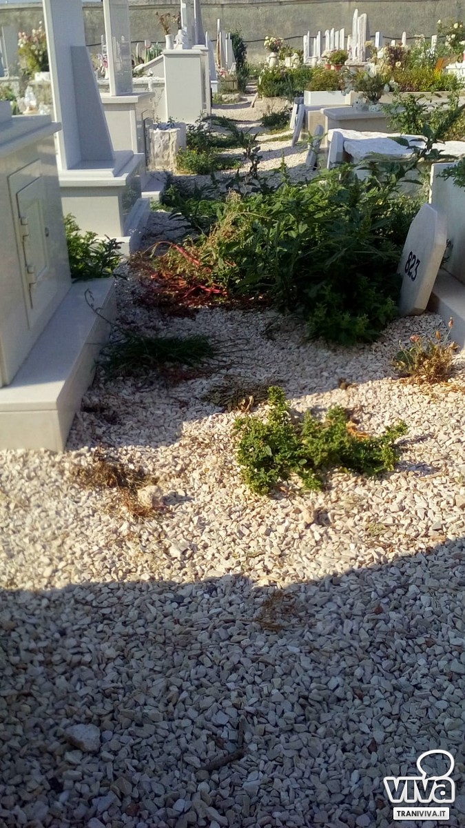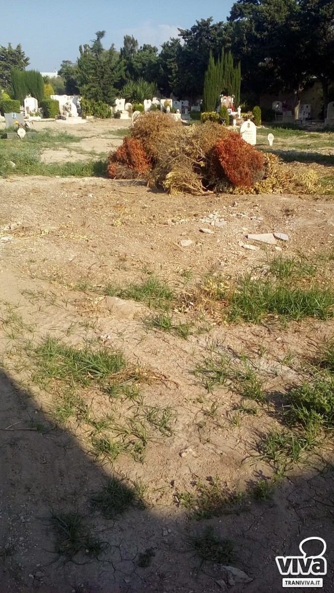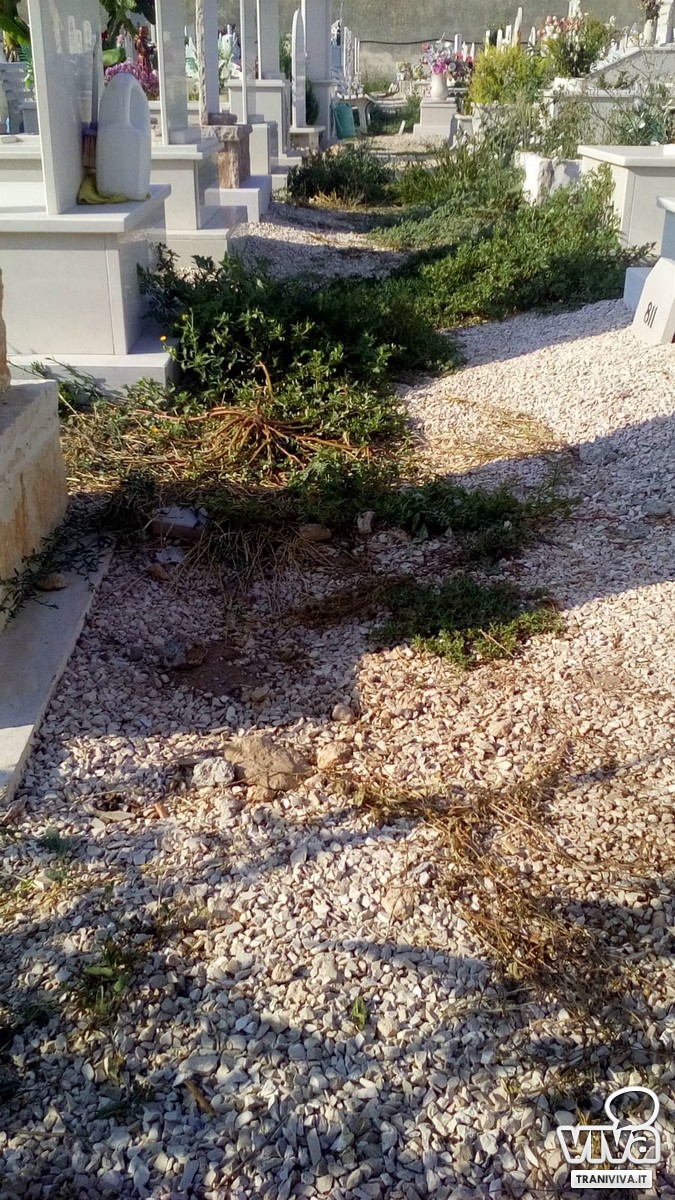 Il tranese, tramite i suoi scatti, racconta di quanto sia difficile spostarsi nel campo a causa dell'erba alta e incolta. In alcuni punti, inoltre, il passaggio è impraticabile a causa della fitta sterpaglia e dei cumuli di rami, ammassati al suolo e non ancora raccolti. Già in passato, altri cittadini avevano segnalato lo stato di degrado del cimitero in attesa che l'Amministrazione prendesse in mano le redini della situazione e vigilasse sulle condizioni del cimitero. In attesa di un miglioramento, ci pensano le sterpaglie a rendere ancora più indecoroso il campo.