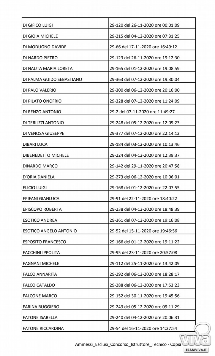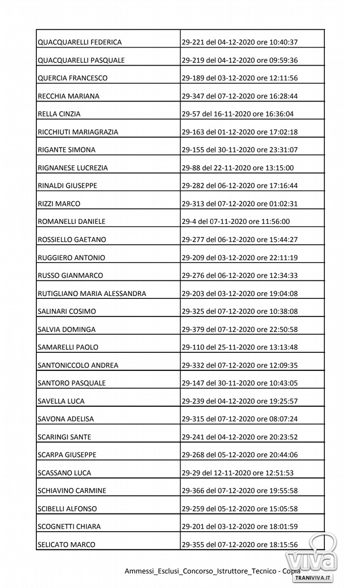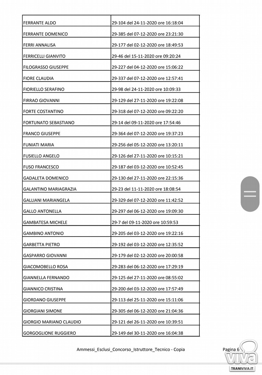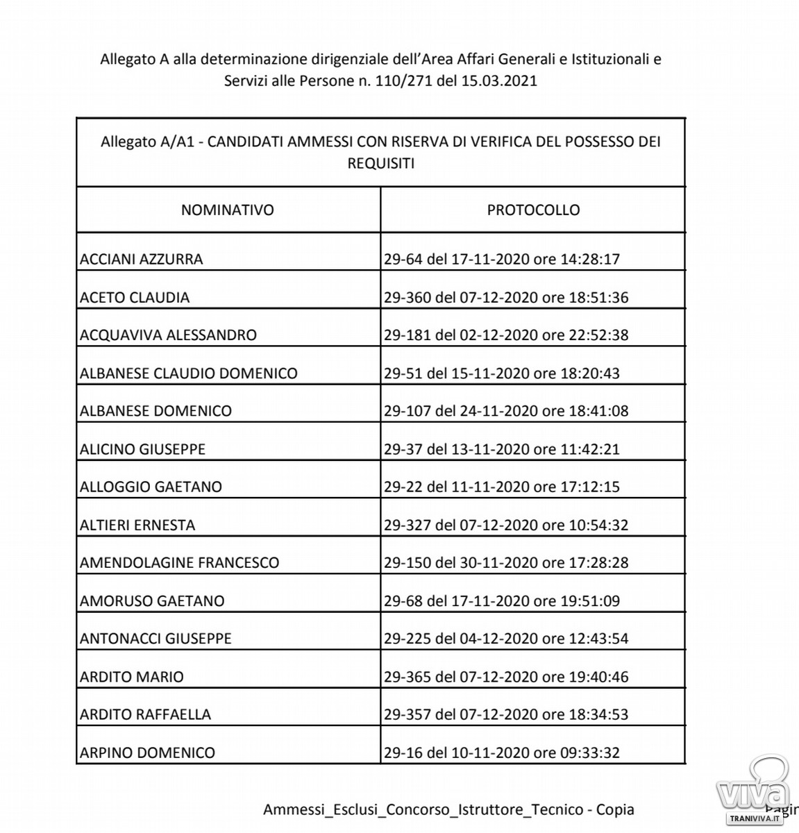 E' stato pubblicato l'elenco dei candidati ammessi al concorso pubblico per titoli ed esami per la copertura con rapporto di ruolo a tempo pieno di 6 posti nel profilo professionale di istruttore tecnico . - categoria C - posizione economica C1.