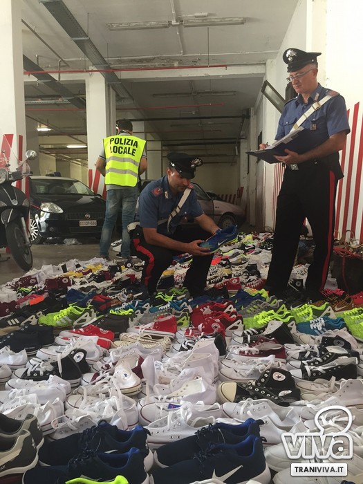 I Carabinieri della Stazione di Trani, unitamente a personale della locale Polizia Municipale, hanno concluso l'altra mattina un controllo straordinario del territorio finalizzato al contrasto della vendita di beni e capi di vestiario recanti marchi contraffatti. I controlli, concentratisi su segnalazione di alcuni cittadini nell'area del locale mercato comunale, hanno consentito di individuare un gruppo di persone di varie nazionalità, nella maggior parte senegalesi, dediti alla vendita di scarpe e borse.