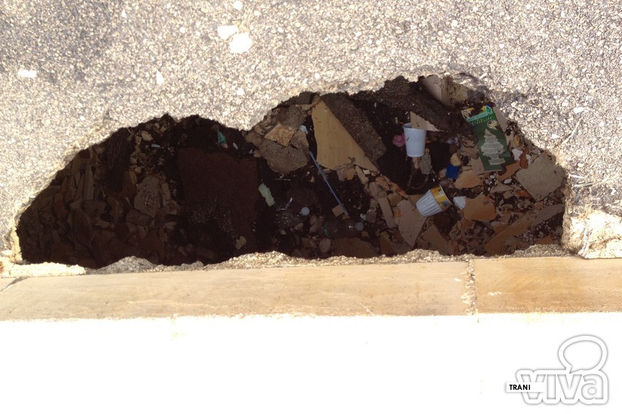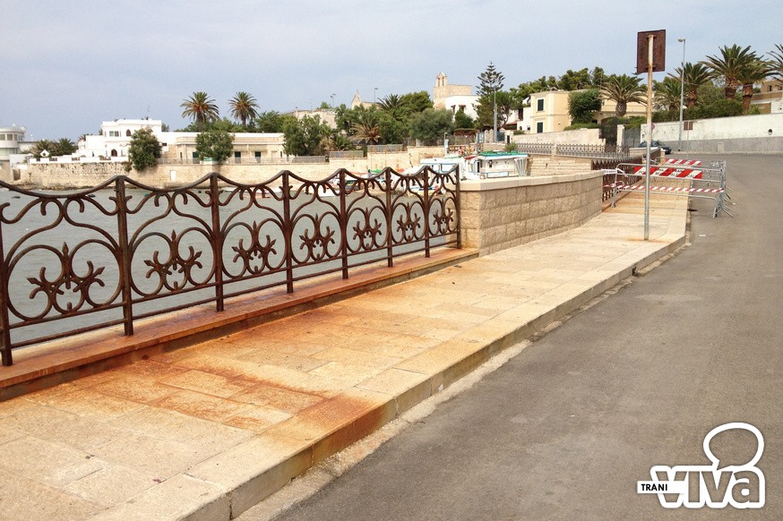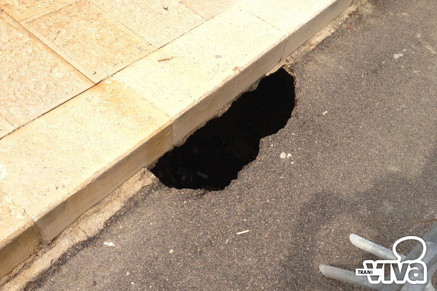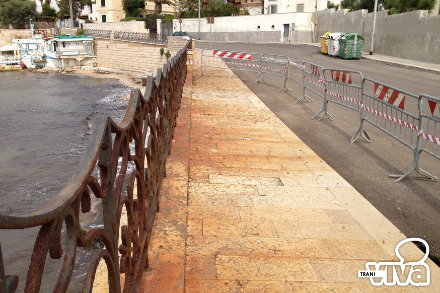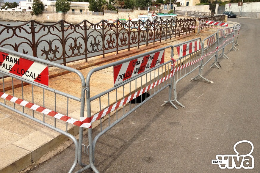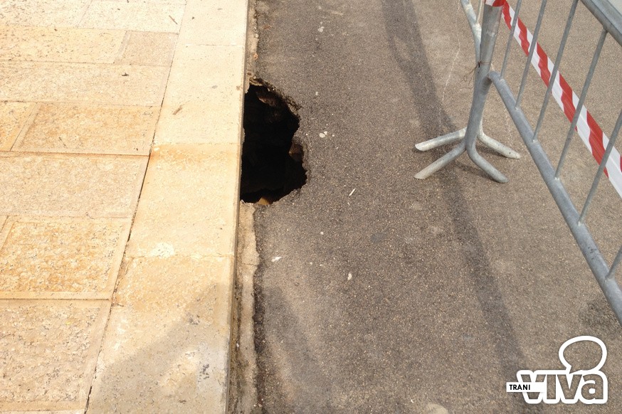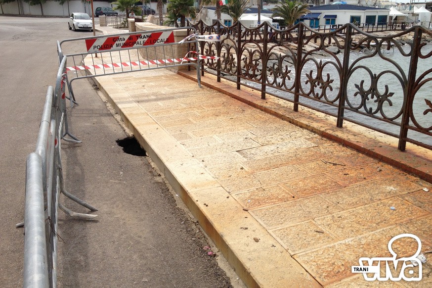Il colpo d'occhio generale è disarmante: la bianca pietra di Trani è completamente tinta di ruggine, il marciapiede è ricoperto di alghe e questo nuovo cratere, che con molta probabilità si allargherà nei prossimi giorni, è stato protetto con transenne che resteranno lì per chissà quanto tempo. Un pezzo di strada che si fa fatica a credere sia stato restaurato solo pochi anni fa dall'amministrazione Tarantini.