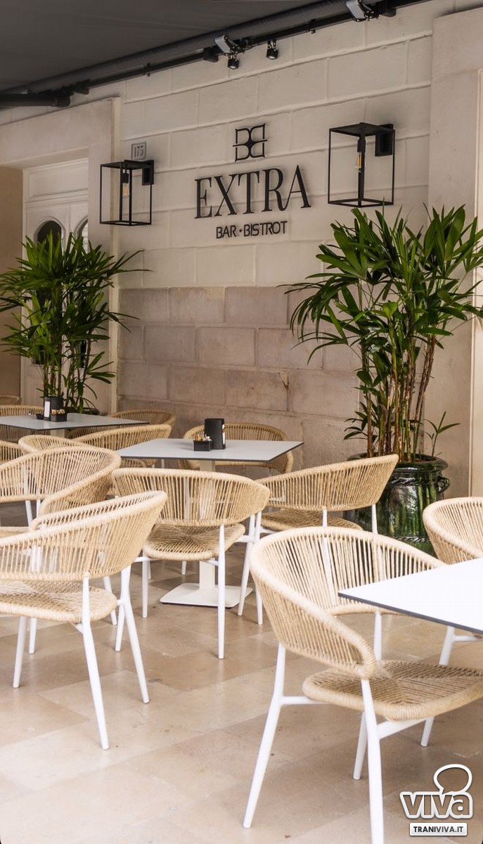 Una trasformazione che non cancella la memoria, ma anzi la rilancia: l'Extra Bar resta fedele al suo ruolo di luogo di socialità cittadina, location ideale per una pausa senza pensieri condita dal gusto giusto per ogni ora della giornata, aprendo nuove porte all'ospitalità e alla cucina, per i tranesi e per i turisti da vicino e da lontano.