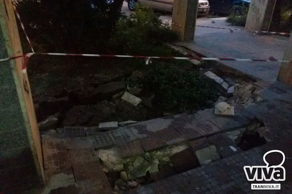 Danni da maltempo: in corso don Luigi Sturzo un marciapiede sprofonda