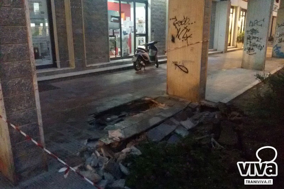 Non solo alberi, sottovia allagati o pedana per i disabili distrutta sulla spiaggia. Il maltempo della scorsa settimana ha creato problemi anche ai marciapiedi: in zona Pozzopiano, e più precisamente in corso don Luigi Sturzo, all'altezza dell'incrocio semaforico, un pezzo di marciapiede non ha retto a causa delle infiltrazioni d'acqua dal terreno dell'aiuola.