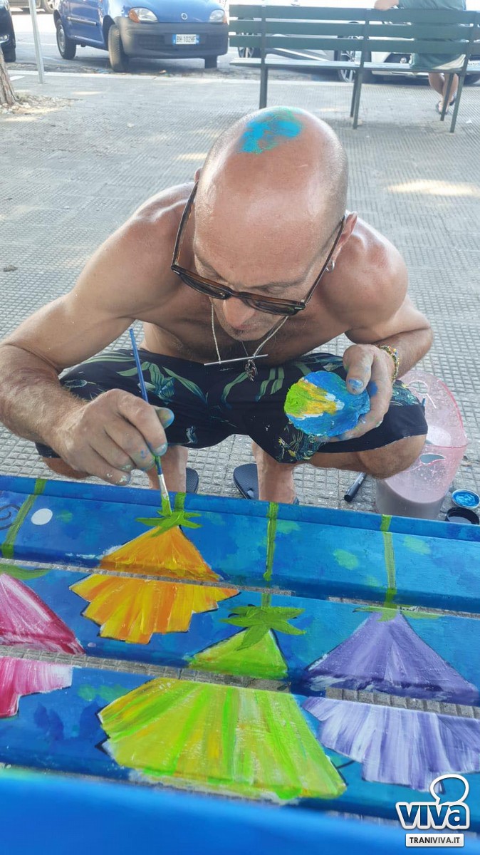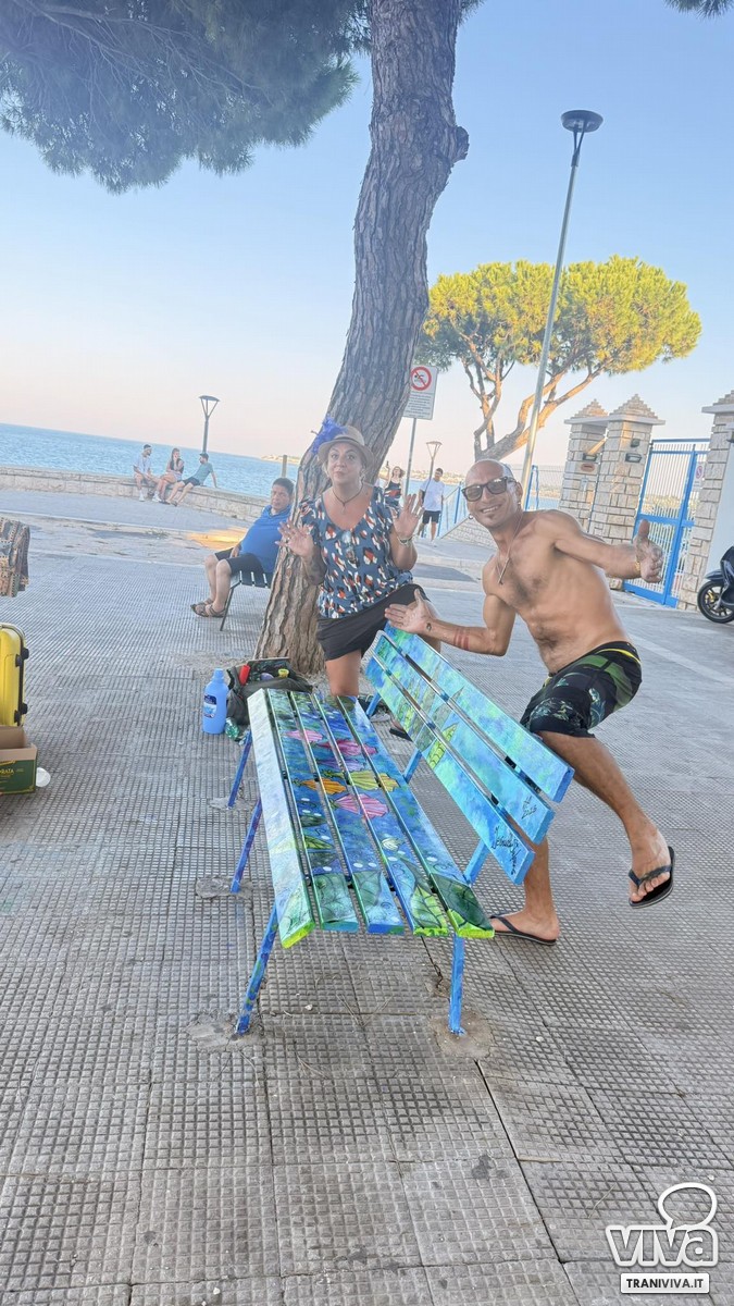 Don Giorgio con il suo post diffonde la bellezza di un gesto spontaneo di due artisti , Stefano Iervicella e Daniela Carolina Piunti, che da Ascoli Piceno, in vacanza a Trani, hanno pensato bene di adottare artisticamente una panchina che si trova sul Piazzale di Santa Maria di Colonna per farne un punto di bellezza: lo hanno fatto spontaneamente e con il sorriso,