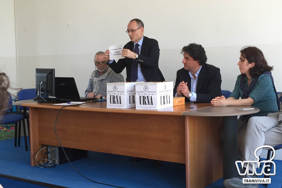 Questo, invece, l'ordine delle liste sulla scheda elettorale: [con Carlo Laurora Sindaco] 1) Nuovo Centro Destra; 2) Trani Futura; [con Antonio Florio Sindaco] 1) Area Popolare; 2) Tonino Florio Sindaco; 3) Trani Libera; [con Emanuele Tomasicchio] 1) Forza Italia; 2) Fratelli d'Italia - AN; 3) Trani Libera; [con Antonella Papagni] 1) Movimento 5 Stelle; [Con Antonio Procacci] 1) Trani a Capo; 2) Trani Like; 3) Buongiorno Trani; 4) Procacci Sindaco; [con Amedeo Bottaro] 1) Prima di Tutto Trani; 2) Partito Democratico; 3) Noi a Sinistra; 4) Più Trani; 5) Realtà italia; 6) Emiliano - Il Sindaco di Puglia; 7) Verdi.