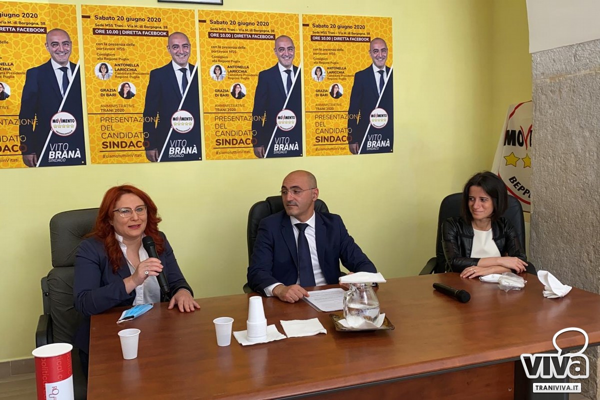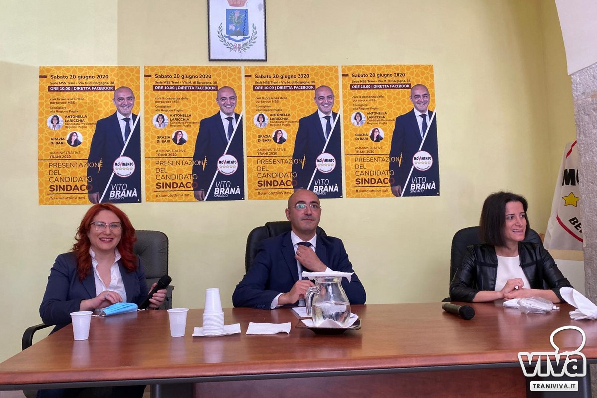 E' Vito Branà il quinto candidato sindaco della città di Trani per le prossime elezioni amministrative in programma il 20 e 21 settembre. Branà, che aveva preso posto tra i banchi del Consiglio comunale nel marzo 2019 al posto della consigliera uscente Antonella Papagni, si è presentato questa mattina alla cittadinanza accompagnato dalla candidata alla Presidenza della Regione Puglia del Movimento Cinque Stelle, Antonella Laricchia e la Consigliera Regionale del Movimento Cinque Stelle Grazia Di Bari.