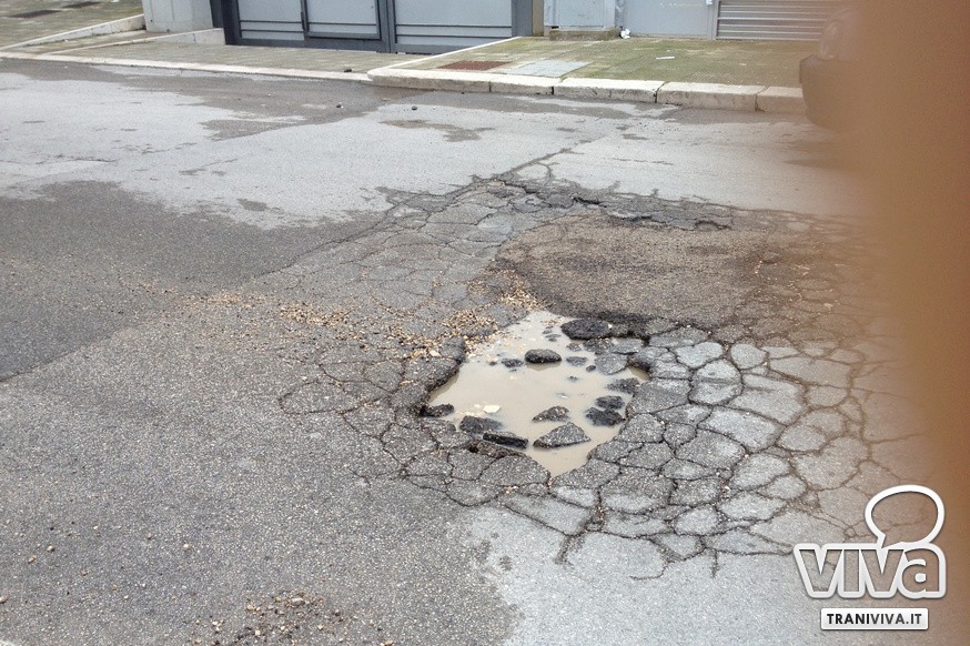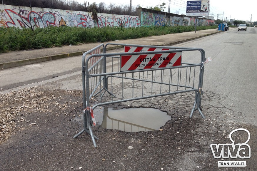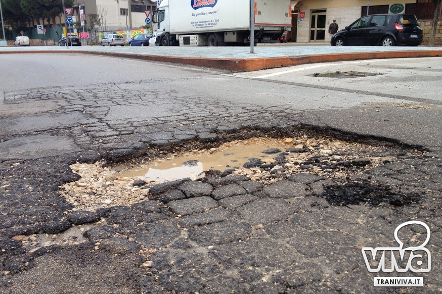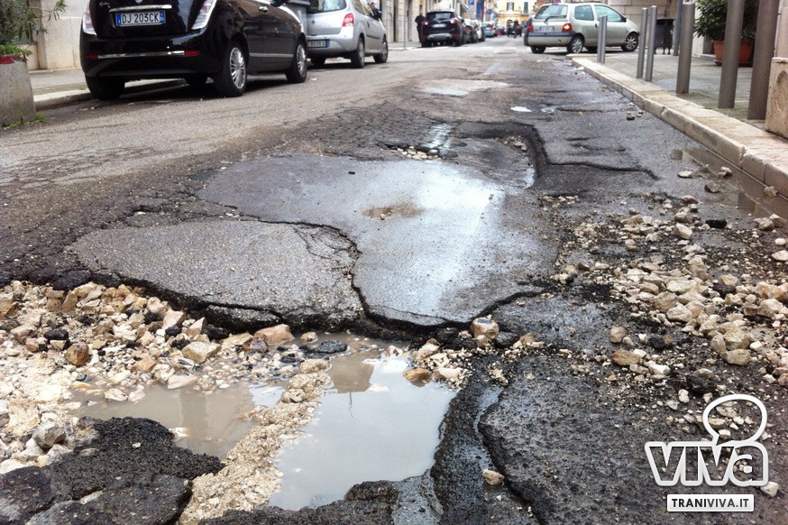 Seppur molto meno consistenti di altre parti della Regione, il maltempo ha provocato danni importanti anche a Trani. Migliaia di buche, a volte vere e proprie voragini, si sono aperte su gran parte delle vie cittadine provocando non pochi disagi alla circolazione e pericoli per gli automobilisti. Le più pericolose sono su via Bari (strada da riasfaltare completamente nonostante gli interventi di alcuni mesi fa) su via Falcone, sul lungomare Mongelli e presso la rotonda di via Istria. È necessario per questo motivo un intervento urgente, una soluzione al problema da trovare nell'arco di pochissimo tempo. E così a seguito di un incontro a Palazzo di Città tra il Sindaco, Luigi Riserbato, il Dirigente di Ragioneria e il Segretario Generale, si è deciso di richiedere un finanziamento alla Cassa Depositi e Prestiti, in modo tale da poter programmare una serie di lavori per far fronte a questa emergenza.