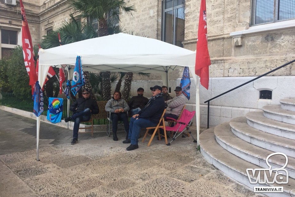 I vigilanti hanno installato un gazebo nel piazzale del Comune e, sventolando le bandiere della Filcams Cgil, hanno proclamato uno sciopero della fame ad oltranza. Dal primo novembre la Sicuritalia ha ceduto il posto all'azienda Vegapol che ha dichiarato di non poter integrare le sette guardie giurate al proprio personale. Gli ex dipendenti, assistiti dalla Filcams Cgil Bat, chiedono, ancora una volta, un incontro con il sindaco affinché possa interagire e trovare una soluzione alla già instabile condizione di lavoro.