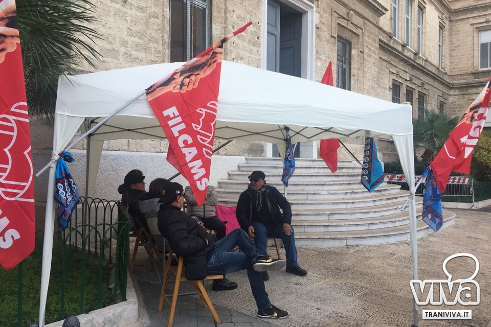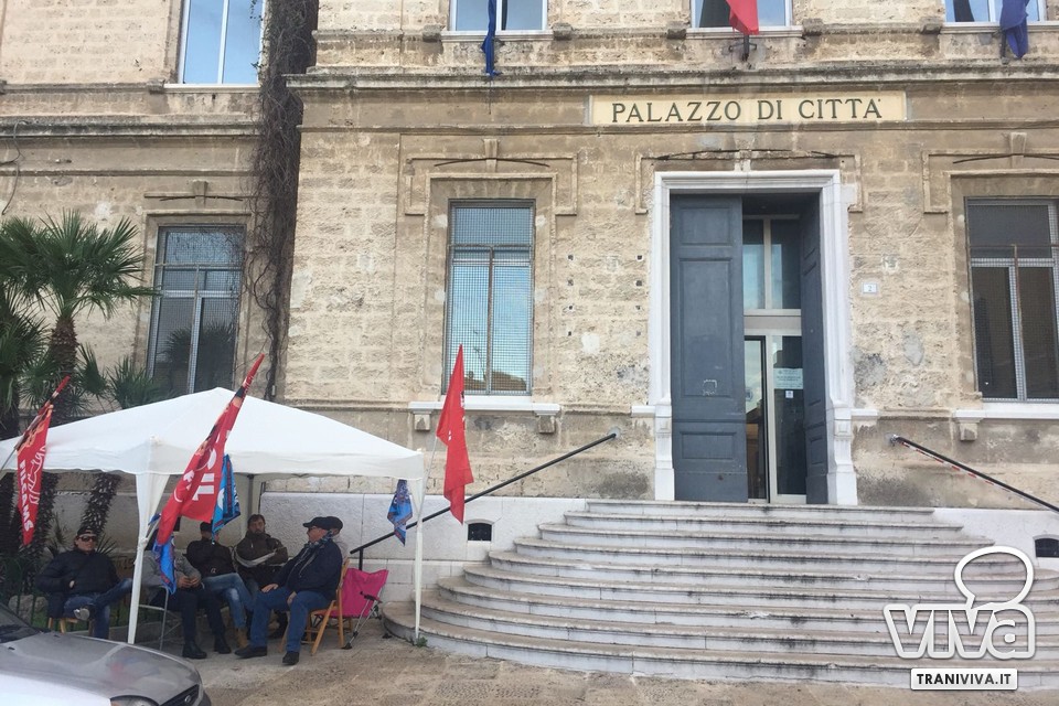 Palazzo di città è il teatro di un nuovo sit-in di protesta. I protagonisti, come lo scorso 11 ottobre, sono i dipendenti della Sicuritalia, azienda che si occupa della vigilanza armata degli stabilimenti di proprietà Amiu (uffici di via Barletta e discarica). Quest'ultima ha rinunciato al servizio di vigilanza armata, mettendo a rischio i posti di lavoro dei suoi dipendenti che prestano servizio per la municipalizzata tranese da ben quindici anni.