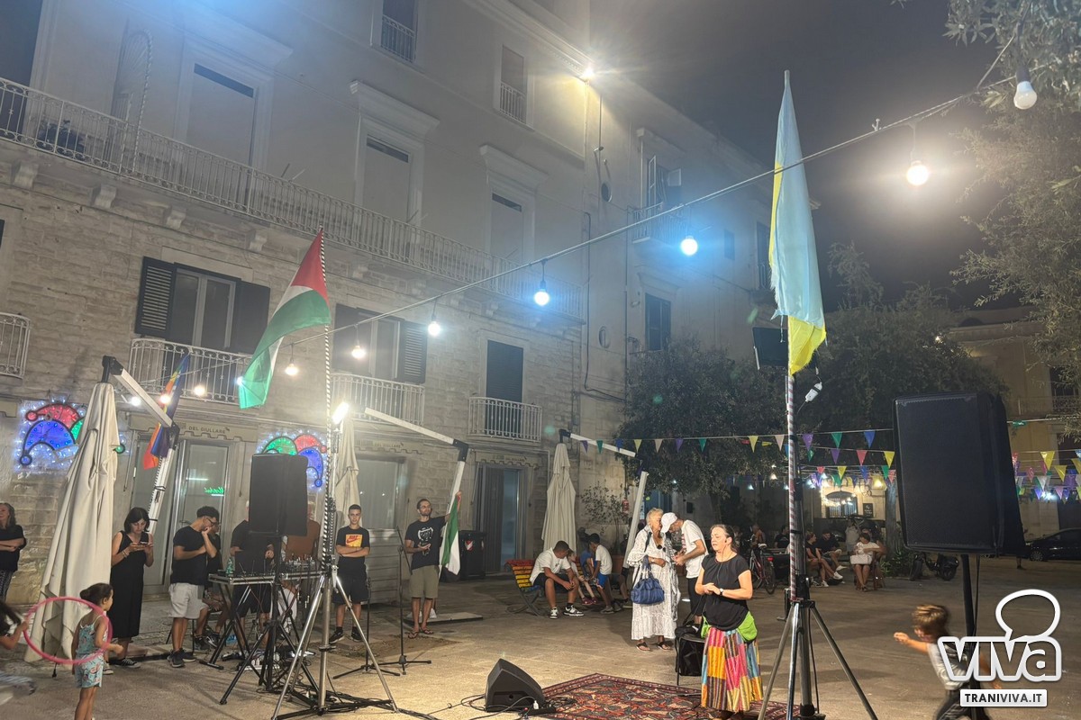 La musica e la danza hanno scandito i tempi della serata. Ad aprire le performance, Zaid Ayasa, artista palestinese residente temporaneamente a Trani, che con la sua musica ha portato le vibrazioni della sua terra e la testimonianza silenziosa di un popolo in sofferenza. A seguire i Top Kiddos, un gruppo di giovanissimi musicisti originari del Gambia, che hanno infiammato il pubblico con ritmi coinvolgenti. Sul palco anche Fondamentali, la compagnia teatrale della Rimessa, che ha saputo fondere parole, corpo e suono in una performance densa di significati. A conclusione, le danze popolari guidate da BOA Danza hanno trasformato la piazza in un luogo di festa collettiva annullando ogni differenza. Quest'anno la Festa dei Popoli ha scelto di dedicare la propria edizione alla tragedia che sta vivendo il popolo palestinese come gesto non solo simbolico, ma profondamente sentito da chi ogni giorno lavora sul territorio per costruire ponti.