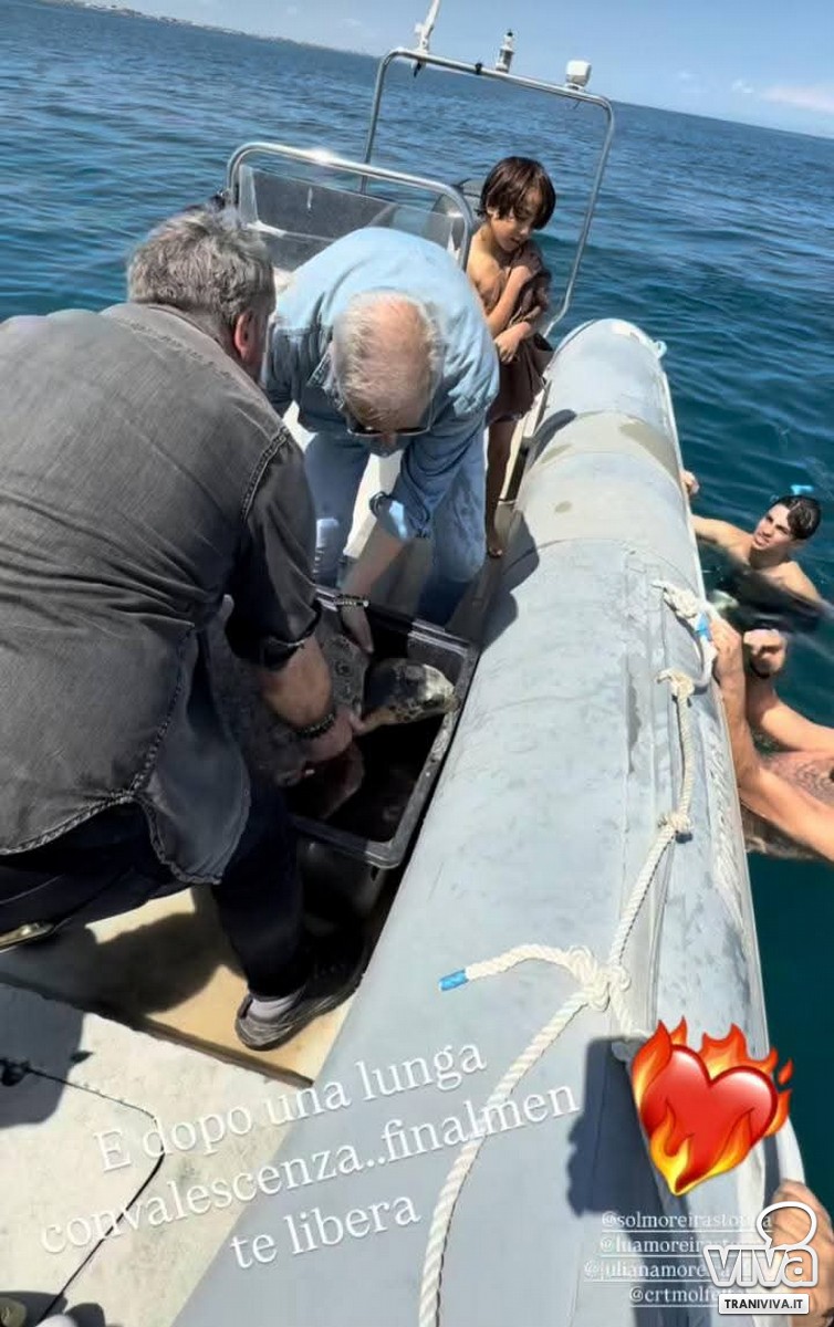 L'impegno quotidiano che da anni unisce il Centro Recupero Tartarughe Marine WWF di Molfetta, la Lega Navale di Trani e la marineria locale ha vissuto ieri un momento speciale. A largo del porto di Trani, due esemplari di Caretta caretta sono tornati in mare dopo un mese di cure, accompagnati dall'entusiasmo di ospiti d'eccezione: Juliana Moreira ed Edoardo Stoppa - quest'ultimo "Medaglia d'argento al merito per la sanità pubblica"e conduttore televisivo definito "fratello degli animali - insieme ai loro figli.
