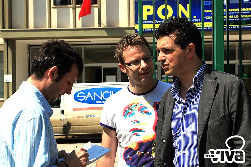Sotero mostra al nostro obiettivo il nuovo volto degli edifici scolastici: «Era importante – dice - nell'anno delle celebrazioni dei 150 anni dell'Unità d'Italia ed a pochi giorni dall'anniversario della proclamazione della Repubblica italiana, dare un segnale visivo di attaccamento alla nostra patria. Vedere quelle bandiere in stato non consono alla nostra città è stato mortificante. Di concerto con l'amministrazione comunale, ho deciso di compiere un gesto che spero contribuisca a rendere più bella la nostra Trani e a far sentire tutti più fieri di essere italiani».