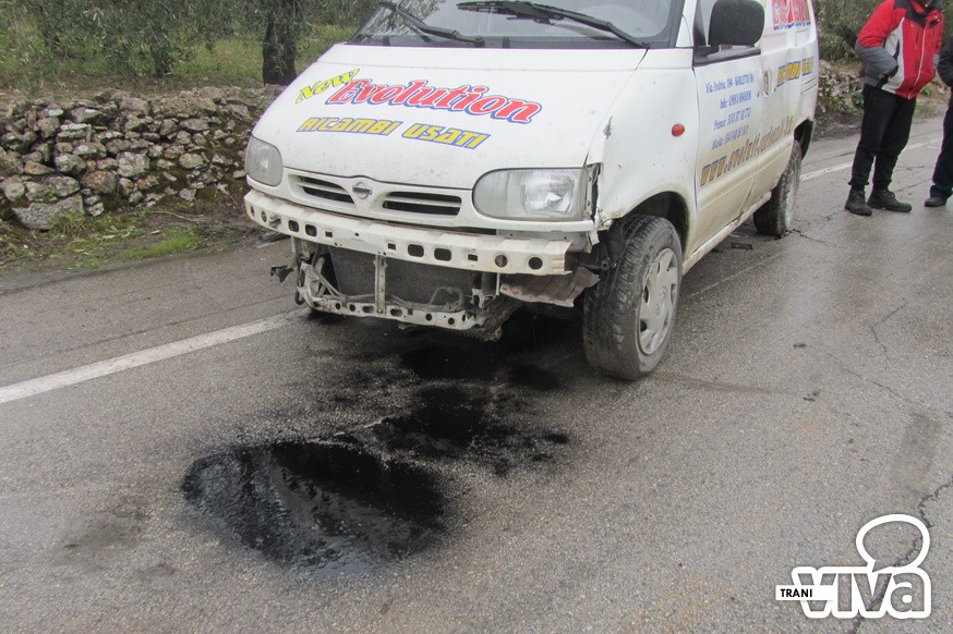Ad indurre il conducente alla brusca frenata è stato lo scattare del giallo del semaforo dove è posizionato l'occhio elettronico. Temendo il rosso, il guidatore ha frenato ma a causa dell'asfalto reso viscido dalla pioggia ha perso il controllo del mezzo che è finito fuori strada, per fortuna senza provocare danni all'uomo. Soccorso dal 118 di Trani, ha riportato un lieve trauma cervicale.