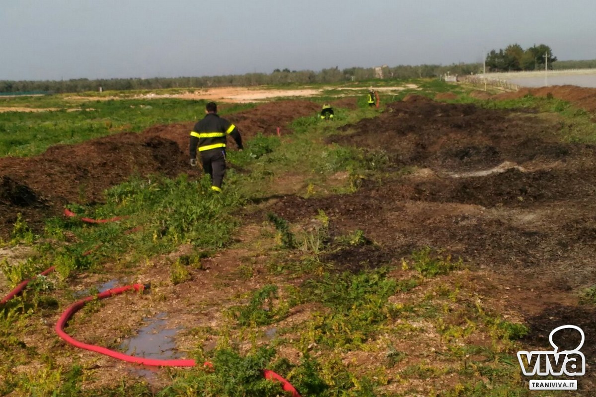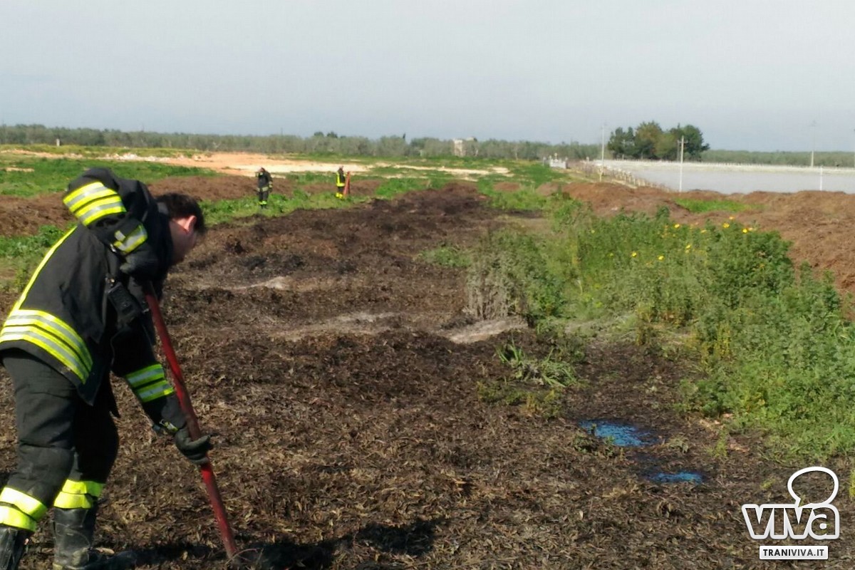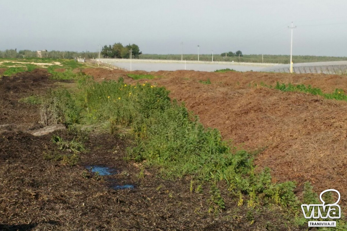 Sul posto sono stati ritrovati 9 cumuli diversi di sfalci di materiale della larghezza di circa 3 metri, con un' altezza di circa 1,2 metri ed una profondità di circa 150 metri. I cumuli erano stati creati dallo stesso proprietario del fondo, titolare anche di un frantoio, per essere sparsi sul terreno. Uno di questi cumuli invece ha preso fuoco. Gli altri sono rimasti intatti. Gli accertamenti sono stati effettuati dagli agenti di Polizia locale di Trani che stanno verificando eventuali ipotesi di illeciti ed hanno diffidato il proprietario, originario di Bisceglie, a mettere in sicurezza il sito affinché l'episodio non si verifichi nuovamente.
