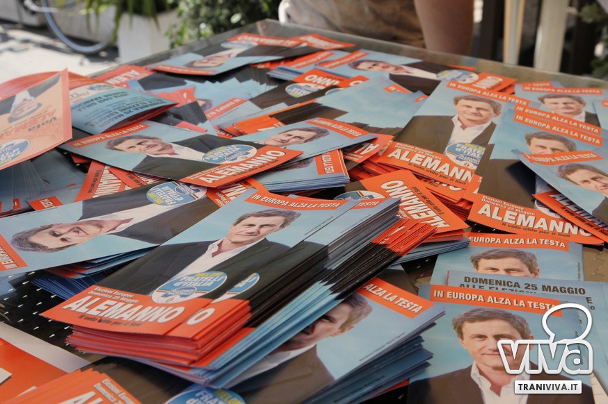 Alemanno, come noto, è candidato al Parlamento Europeo e allora quale migliore occasione per esporre il suo programma elettorale: l'uscita dall'euro, la moneta unica origine dell'attuale stato di crisi, i finanziamenti per il Mezzogiorno, il controllo sulll'immigrazione, sono stati questi i temi al centro del dibattito. Ad animare il tutto le domande incrociate dei giornalisti Massimo Pillera e Antonio Quinto. Il tour di Alemanno continua nel pomeriggio, impegnato in altre città delle provincie Bat e Bari, ma la prova più difficile sarà quella del 25 maggio quando con il suo movimento, insieme a Giorgia Meloni, dovranno superare la soglia di sbarramento per poter conquistare quanti più seggi possibili a Bruxelles.
