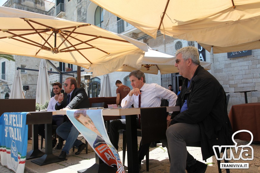 Tra Gianni Alemanno e la città di Trani c'è un feeling particolare, ogni volta che il leader di Fratelli d'Italia-An arriva sul territorio si raduna sempre il cosiddetto "pubblico delle grandi occasioni". È stato così anche questa mattina, sul porto, nell'incontro elettorale organizzato dal consigliere comunale Raimondo Lima.