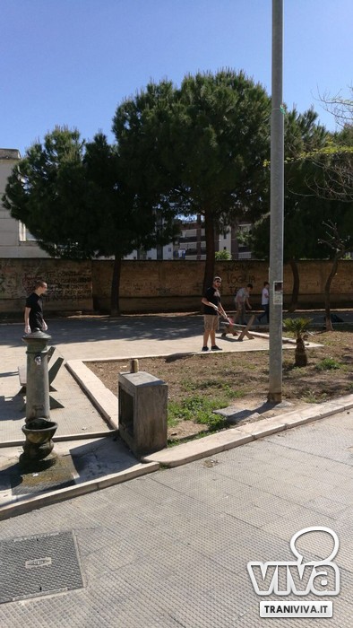 Domenica 14 maggio, i ragazzi di Gioventù nazionale, movimento giovanile di Fratelli d'Italia, hanno effettuato l'intera pulizia di piazza Salvatore D'Acquisto, uno dei tanti luoghi periferici della nostra città completamente trascurato ed abbandonato dalle nostrane istituzioni cittadine. Sebbene durante la campagna elettorale della primavera 2015 una delle innumerevoli promesse fatte dall'attuale amministrazione concernesse proprio la "riqualificazione" delle periferie, risulta ai più che tale promessa non è stata assolutamente mantenuta. Dunque, si può asserire che non basta fare proclami o reiterare promesse se poi non si è in grado di mantenerle. A tal proposito, il presidente di Gioventù Nazionale, Nicola Lampidecchia, ha dichiarato: «Siamo sempre stati dell'idea che la politica si faccia per strada, ma non come pensano i nostri amministratori, i quali si occupano, o fingono di occuparsi, delle nostre periferie solo in campagna elettorale, salvo poi dimenticarsene una volta insediati a Palazzo di Città. Le nostre azioni sono volte alla valorizzazione e alla rivalutazione di quelle aree della città che non solo geograficamente sono ai margini di Trani, che non può e non deve valorizzare solo il suo salotto buono.
